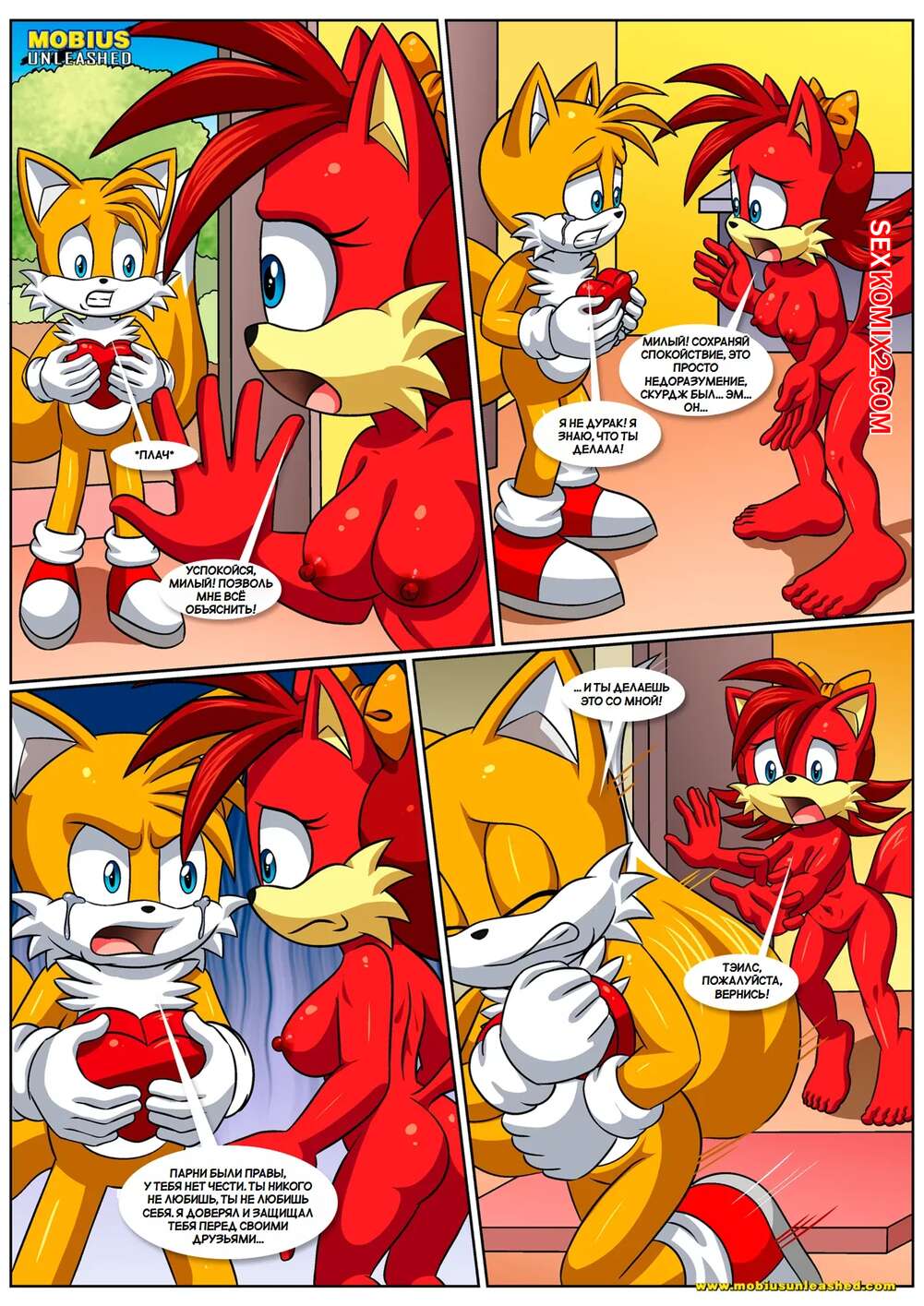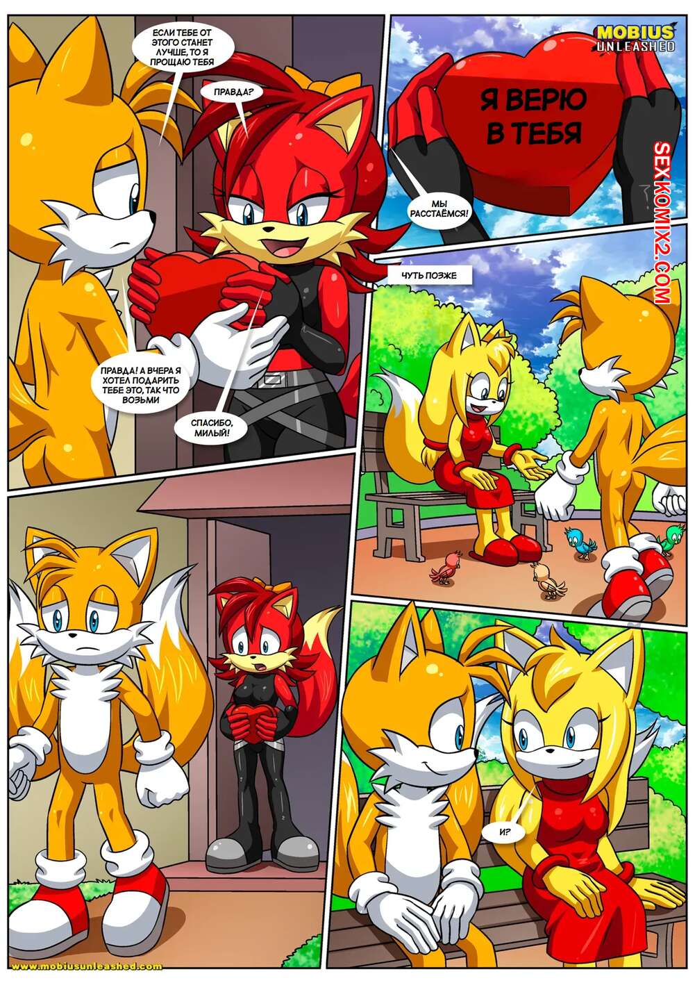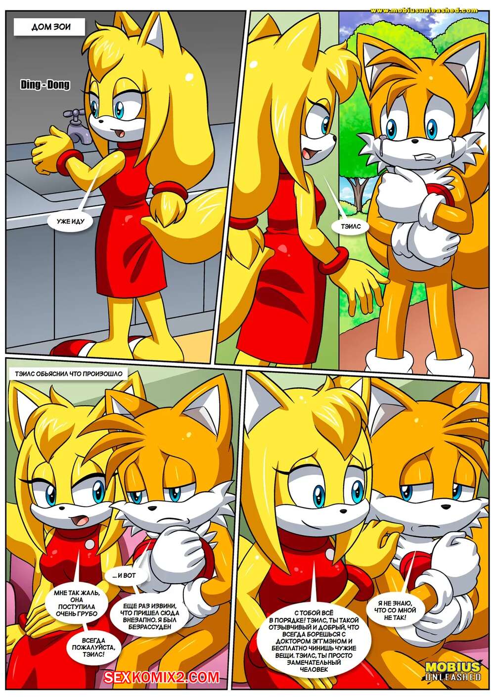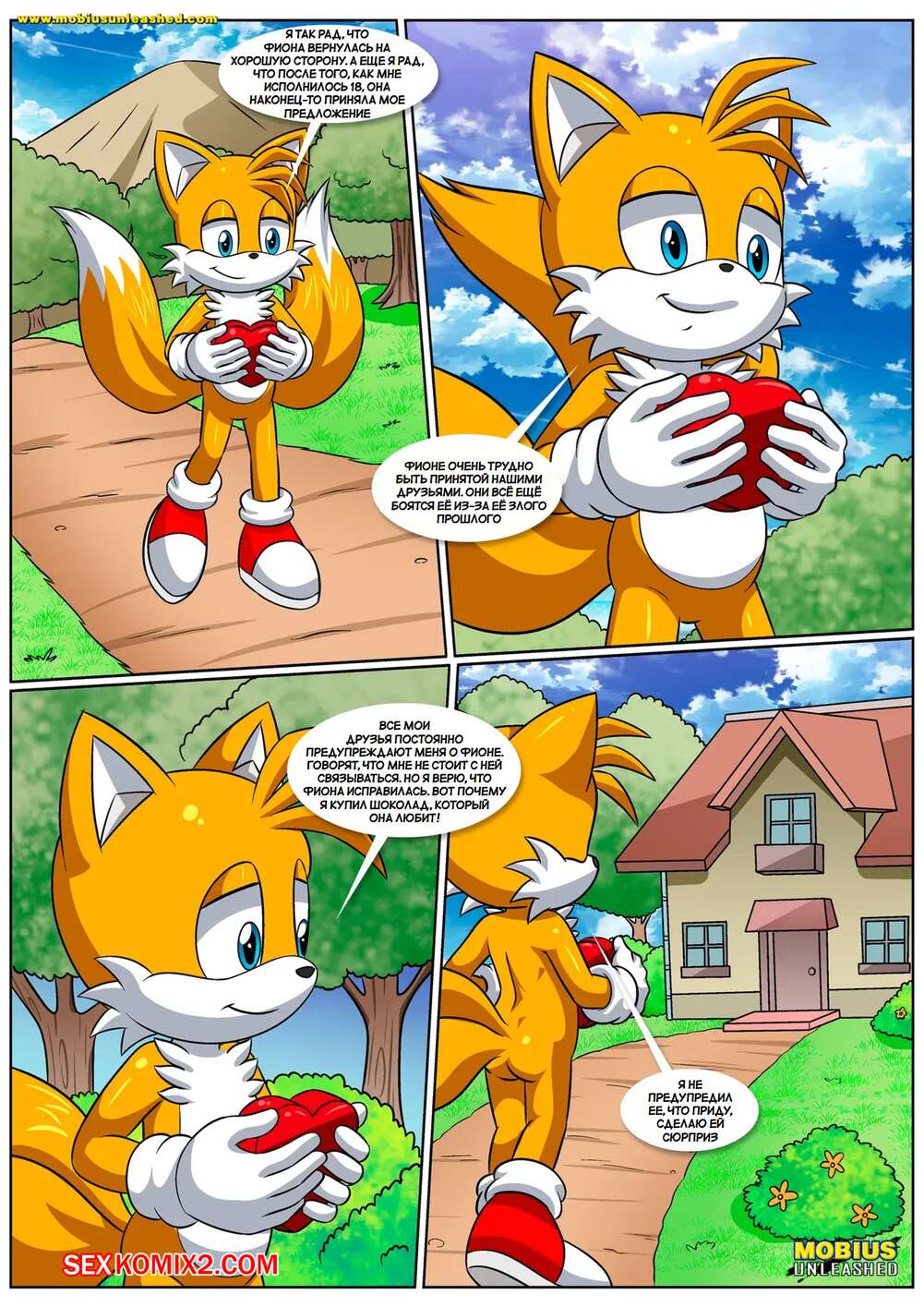 Порно комикс Соник. Позволь мне любить тебя. Let Me Love You. Palcomix. Тейлз пришел к своей подруге и она решила повеселиться с парнем. Красотка отвела друга в спальню и отсосала его большой хуй, после чего дала ему выебать свою пизденку.