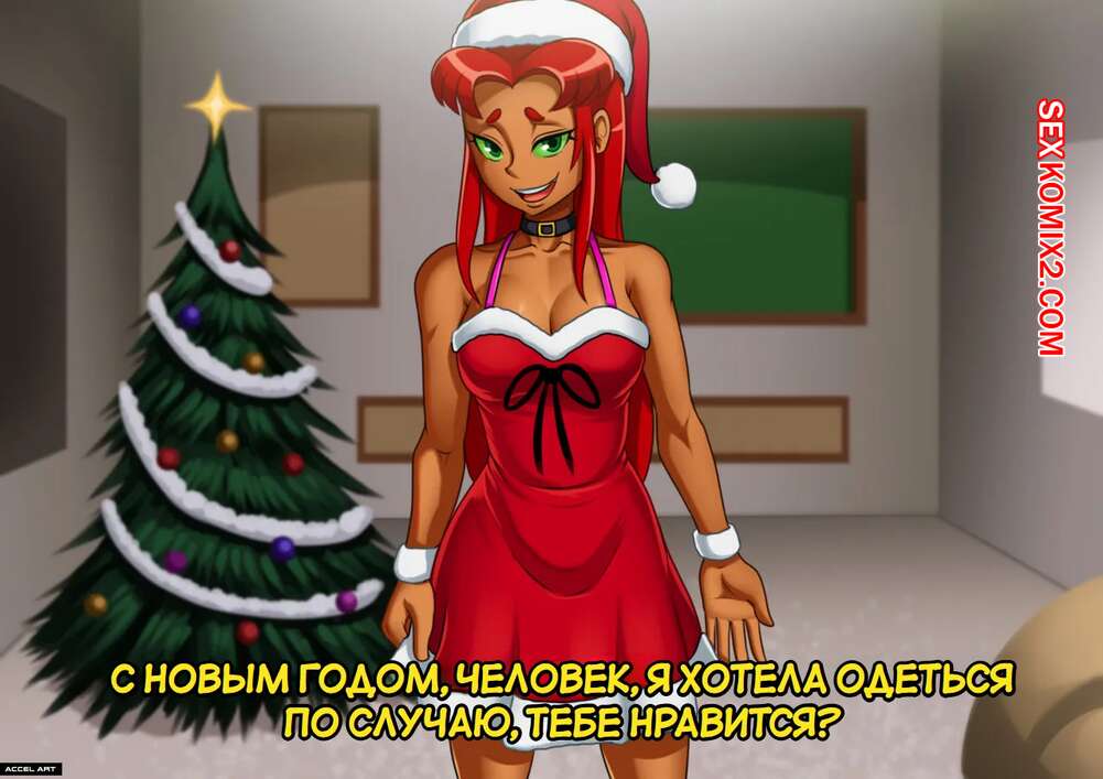 Порно комикс Teen Titans. Старфаер. Star Fire. Christmas collection. Accel Art. Рыжая красотка Старфайр решила сделать сюрприз своему дружку на Рождество. Красотка возбудила парня шикарным телом в сексуальном наряде, после чего отсосала его член и дала себя выебать.