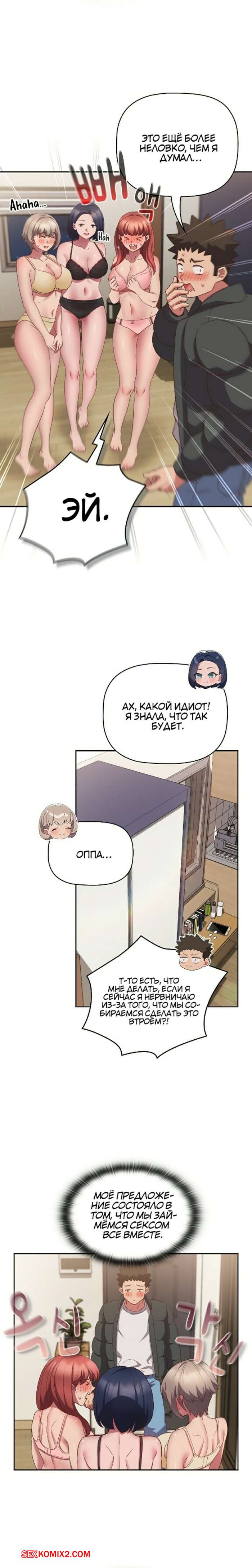 Порно комикс Я не смогу жить вчетвером. Часть 47 и 48 и 49 и 50. I cant live with you four Горячие красотки были очень возбуждены и решили повеселиться со своим дружком. Они встали на колени и отсосали большой хуй парня, после чего дали ему себя хорошенько выебать.
