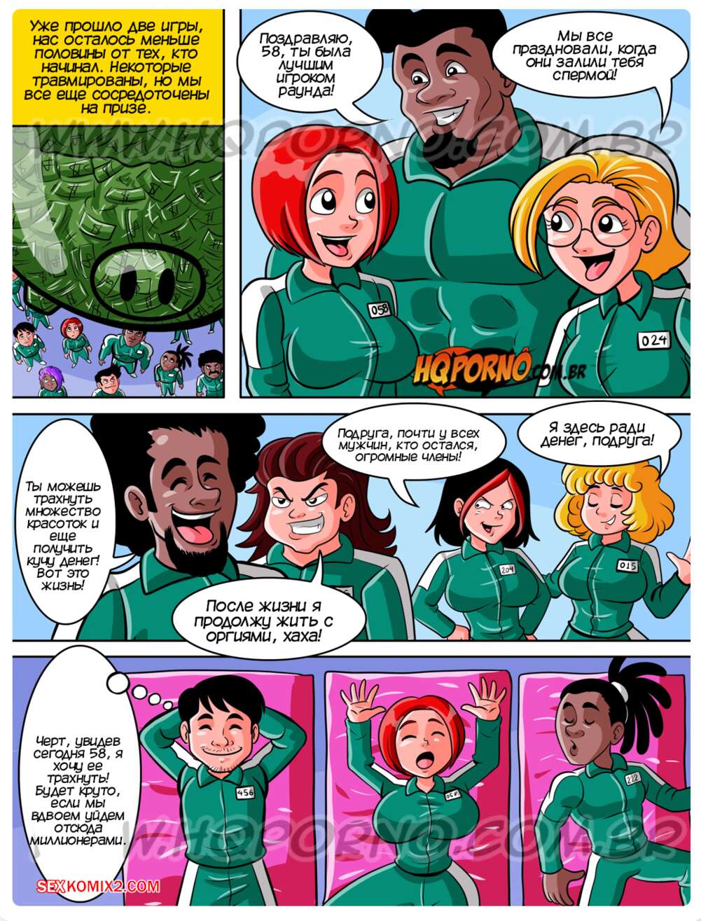 Порно комикс Секс раунд. Часть 3. HQPorno Секс игры продолжаются и на этот раз наш главный герой оказался в паре с 58ой. Красотка разделась и дала своему другу себя хорошенько выебал, благодаря чему они одержали победу и остались живы.