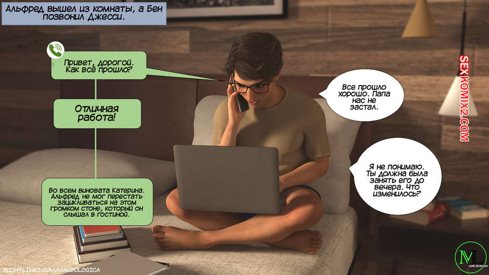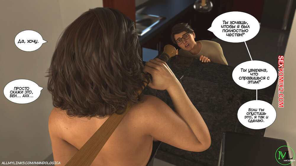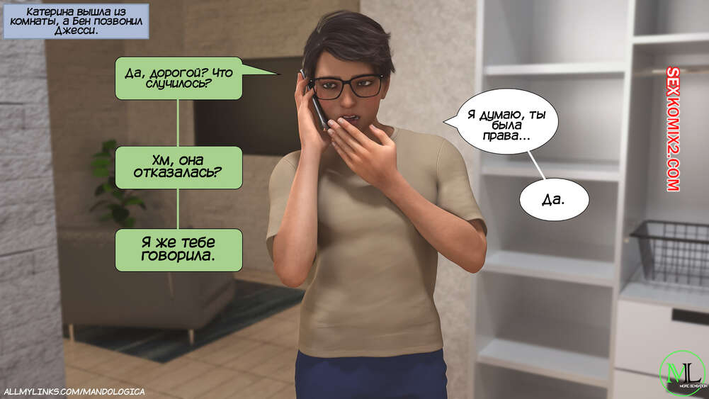 Порно комикс Запретное пламя. Часть 5. Forbidden Flames. MandoLogica Катерина собиралась отправиться на работу, чтобы больше не оставаться наедине с Беном. В этот момент к ним домой пришла Джесси, от чего Катерина пришла в бешенство и решила остаться дома.