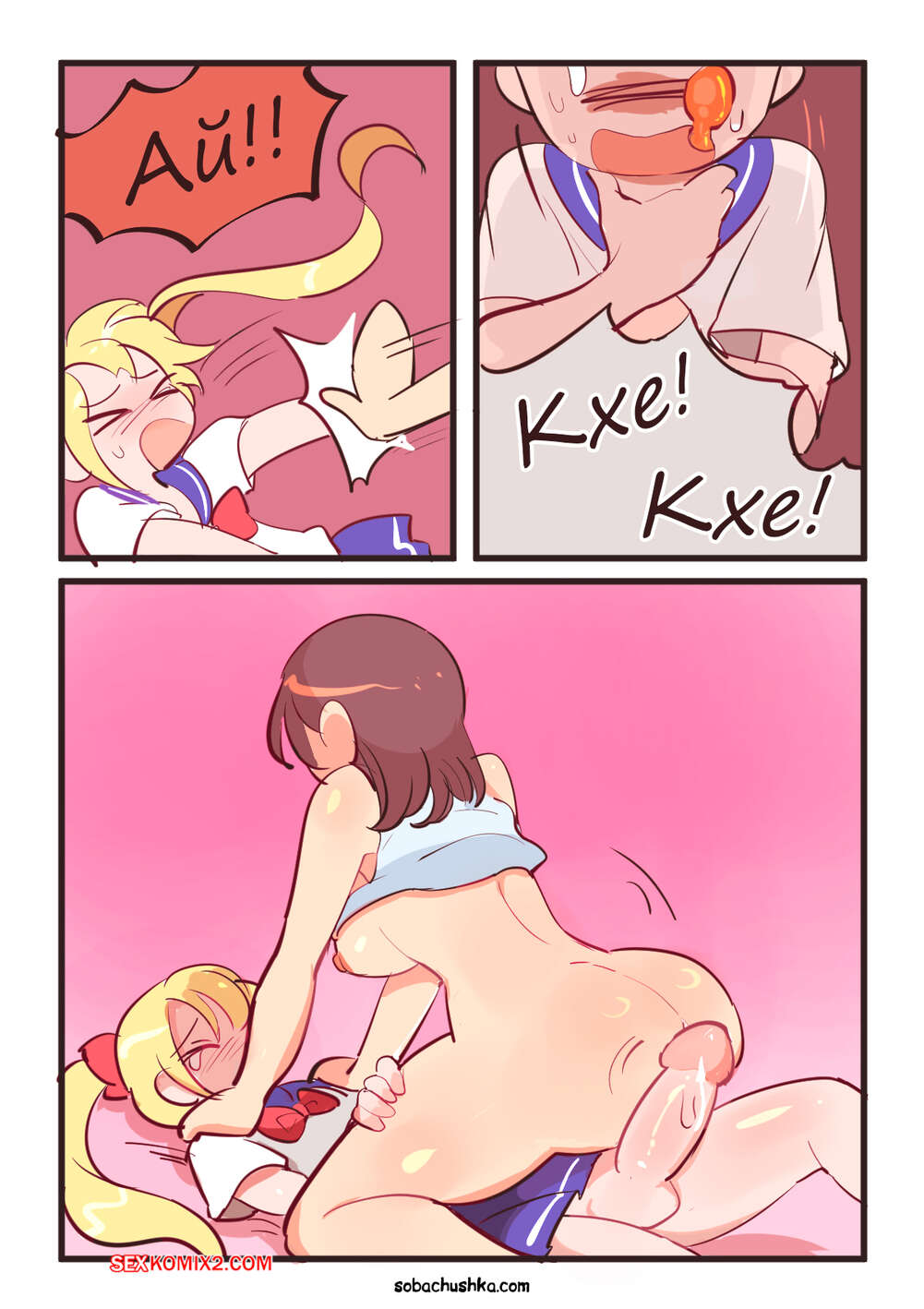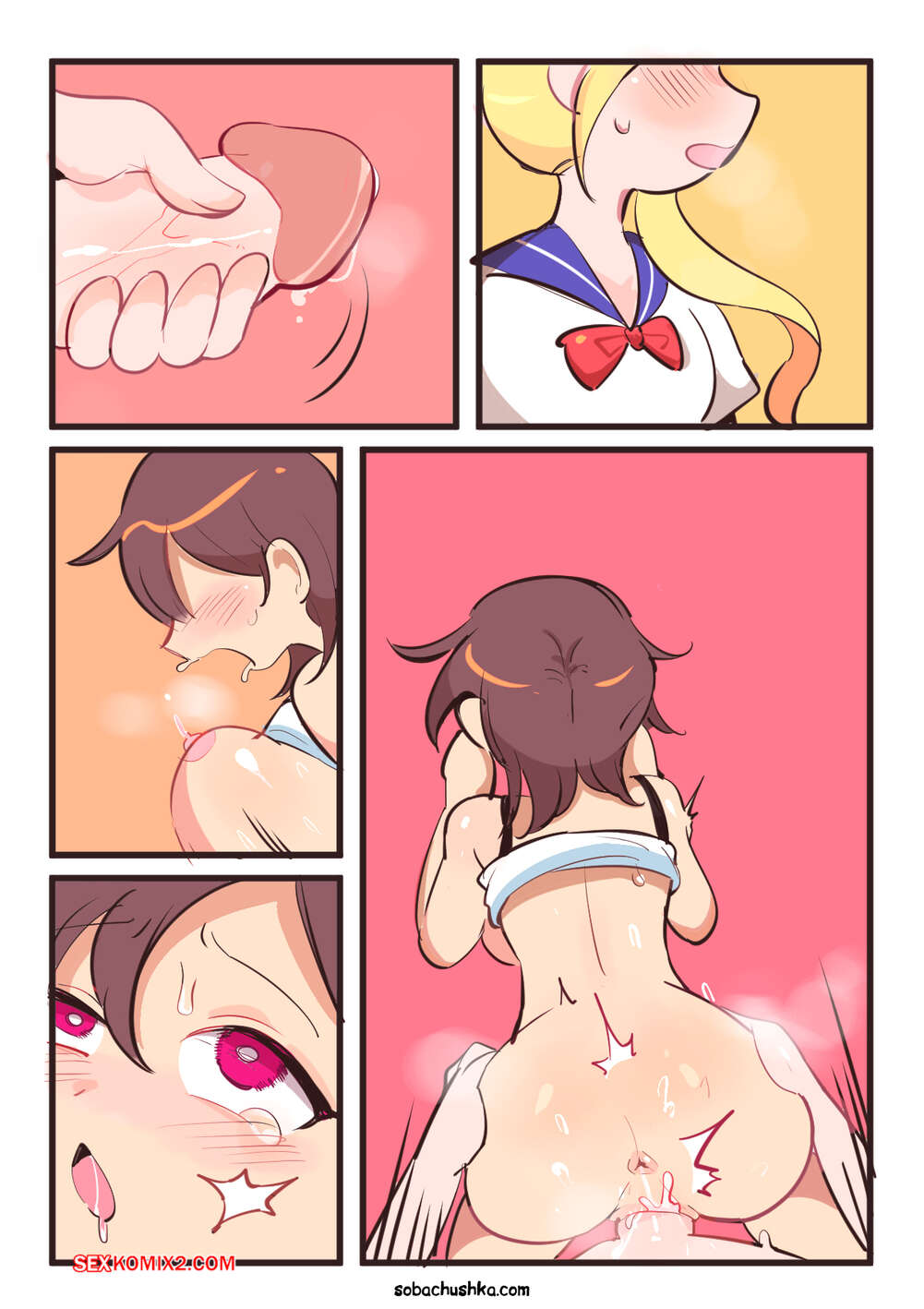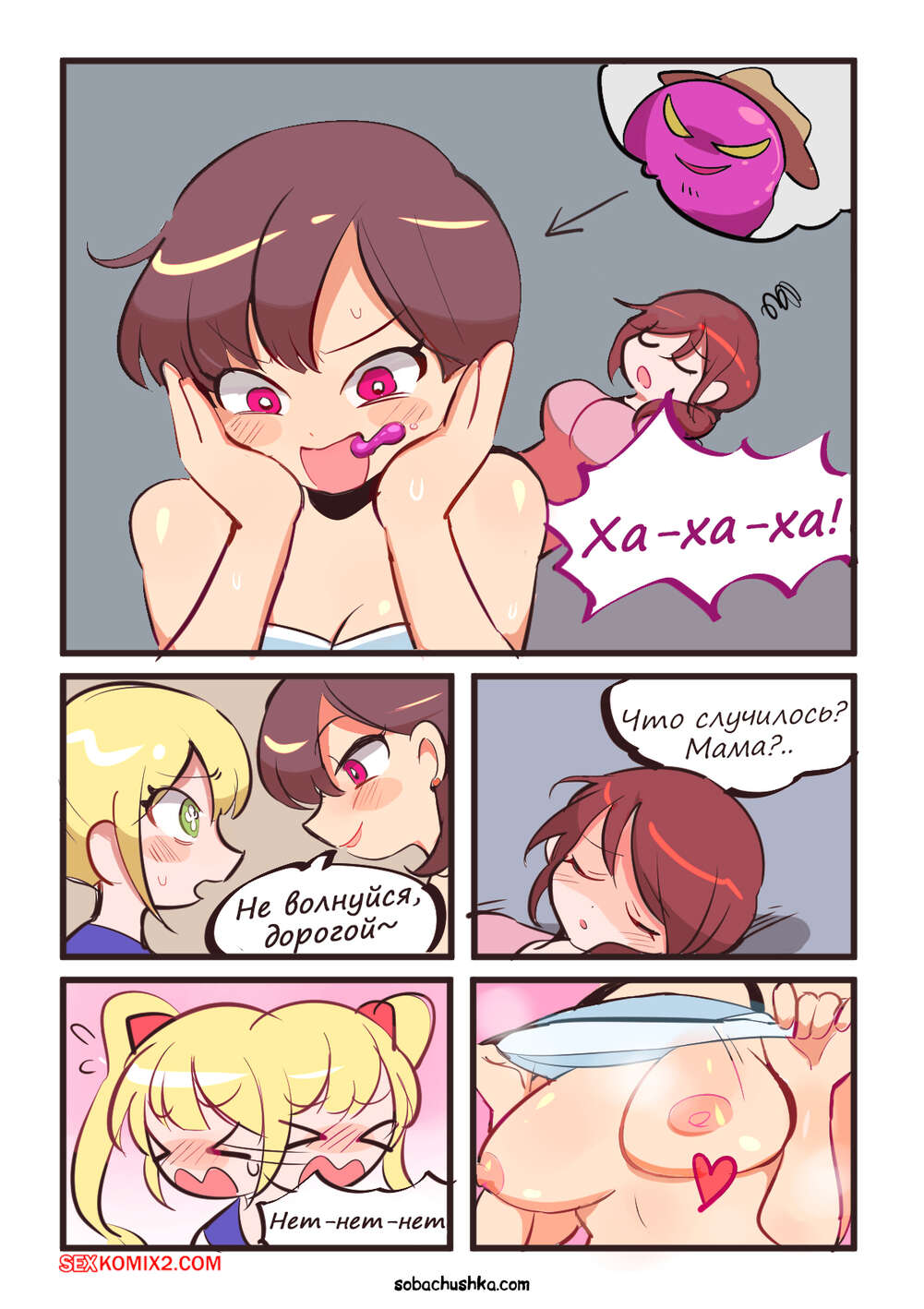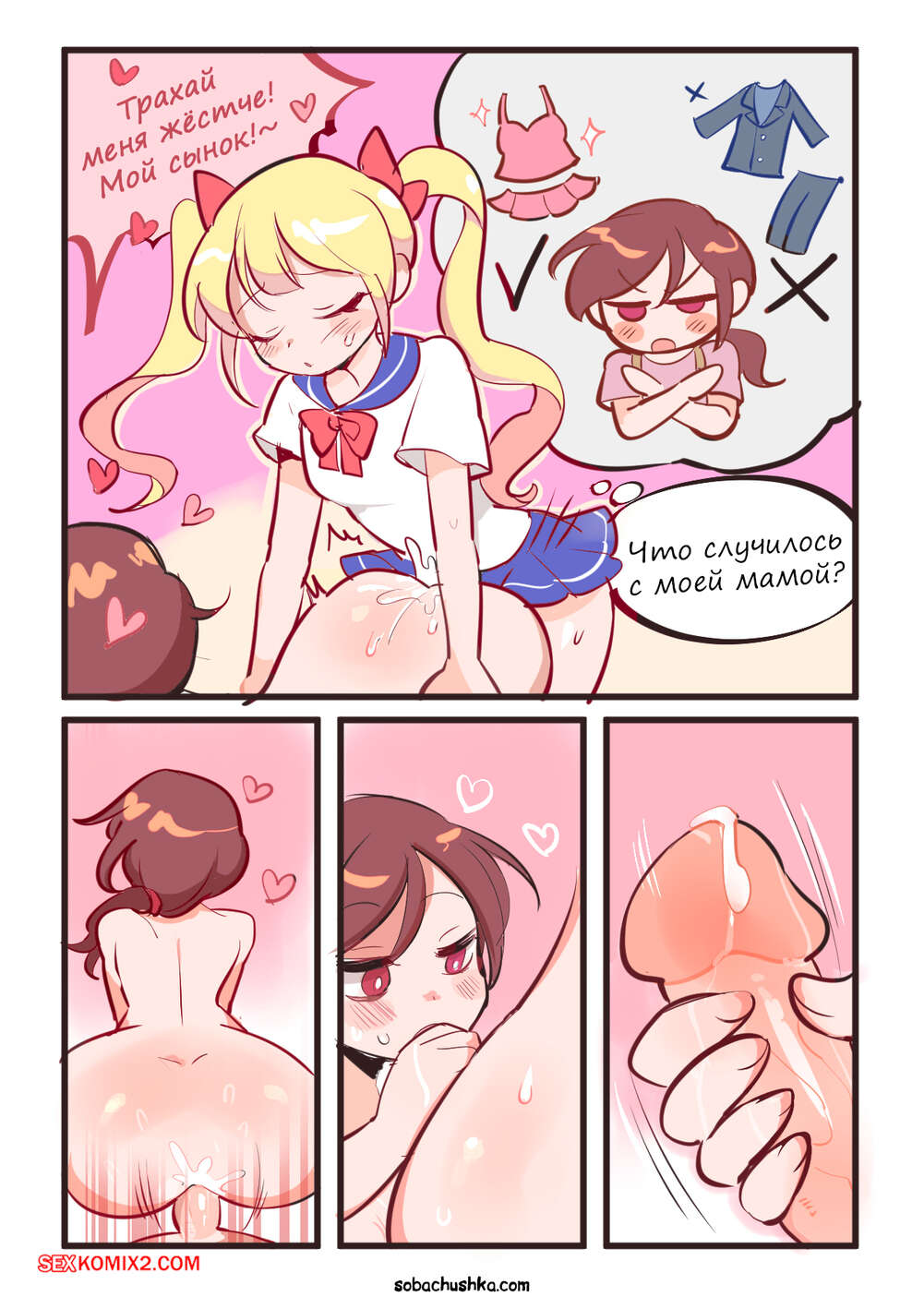 Порно комикс Мать и сын. Часть 2. Seifuku Oyako. Butter Bunny Горячая брюнетка была очень возбуждена и решила повеселиться со своей соседкой с большим членом. Красотка разделась и соблазнила блондиночку, после чего дала ей себя выебать.