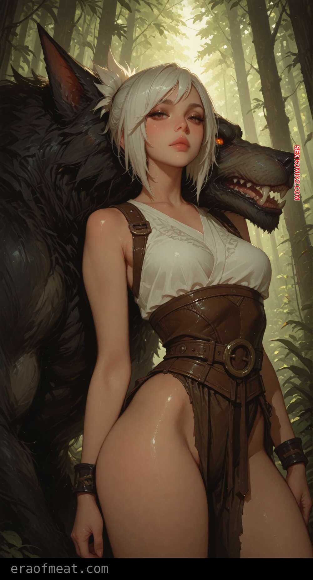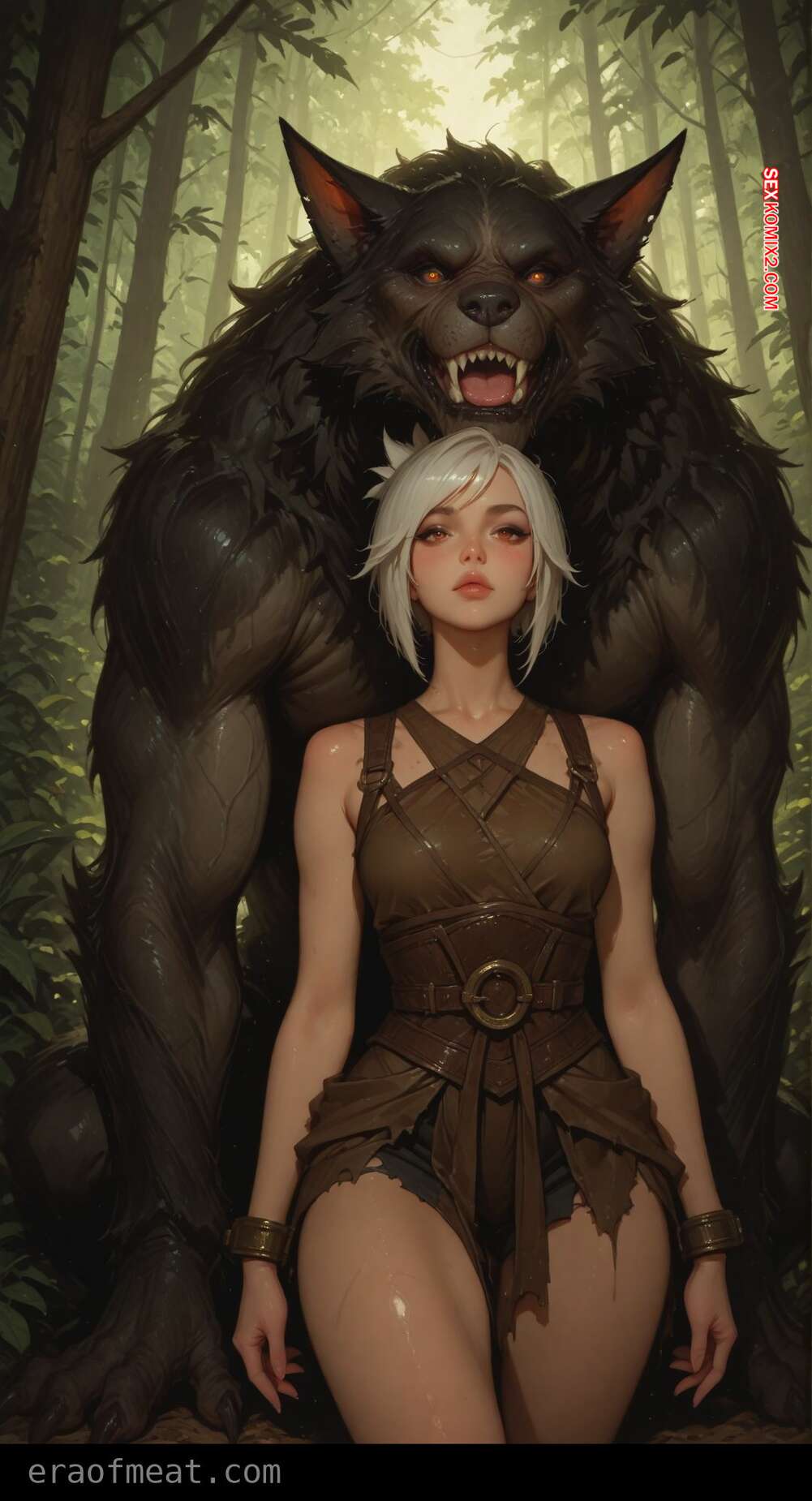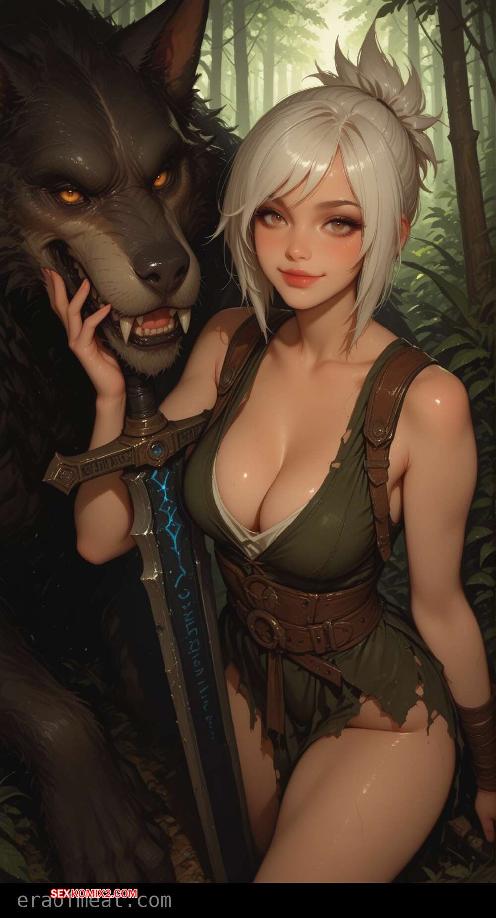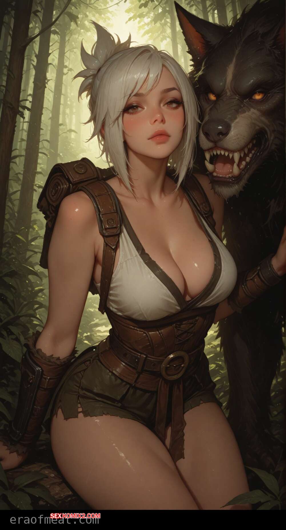 Порно комикс Riven. Era of Meat Монстры схватили в лесу горячую блондинку, желая с ней повеселиться. Они раздели девушку и дали ей отсосать свои большие хуи, после чего как следует выебали ее пизденку.
