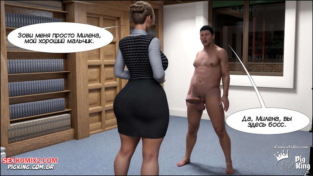 Порно комикс Милена. Часть 2. Milena. CrazyDad3D Горячая красотка Милена продолжает соблазнять юного парня Дэвида, преследуя свои цели. В библиотеке никого не осталось, поэтому Милена раздвинула ножки, чтобы дать парню себя выебать.