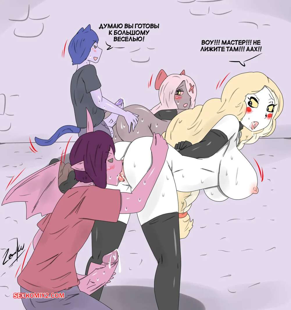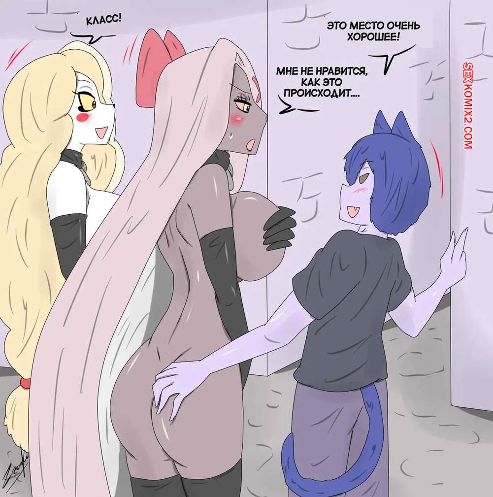 Порно комикс Отель Хазбин. Веселая сделка. Сексуальное откровение. Deal Fun. tikoriko. Два друга соблазняют горячих блондинок, желая повеселиться. Девушки разделись и отсосали большие хуи парней, после чего дали им себя хорошенько выебать.