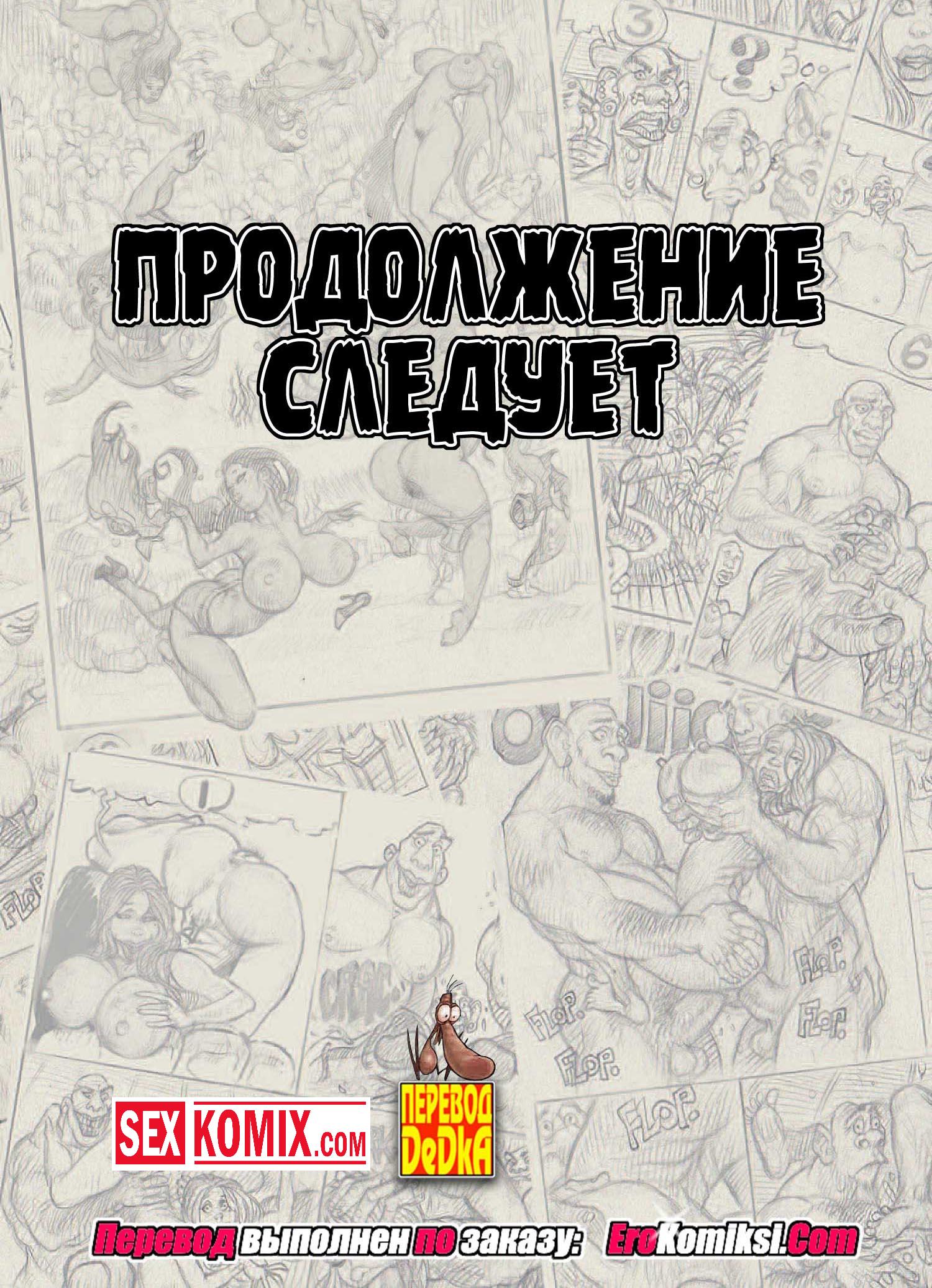 Порно комикс «Мелони Свит. Таинственный остров. Часть 3. Встреча с монстром». В этом комиксе для взрослых вы увидите продолжение приключения фантастической брюнетки по имени Мелони. Аборигены которых она встретила на острове, привязали её к столбу для жертва приношения гигантскому монстру, великан пришёл за своей добычей и очень был рад такому подарку. Он унес девушку в свой лес и Мелони узнала, что этот монстр очень добрый и все молодые девушки которых ему приносили в жертву, спокойно живут вместе с ним. Он их взял для сексуальных утех, но чернокожие его перестали возбуждать. А когда он увидел нашу красотку, у великана сал его гигантский член. Но во беда, член на столько огромный, что бедняжку бы порвало, поэтому он трахнул сочные дырочки своей пленницы с помощью пальцев.