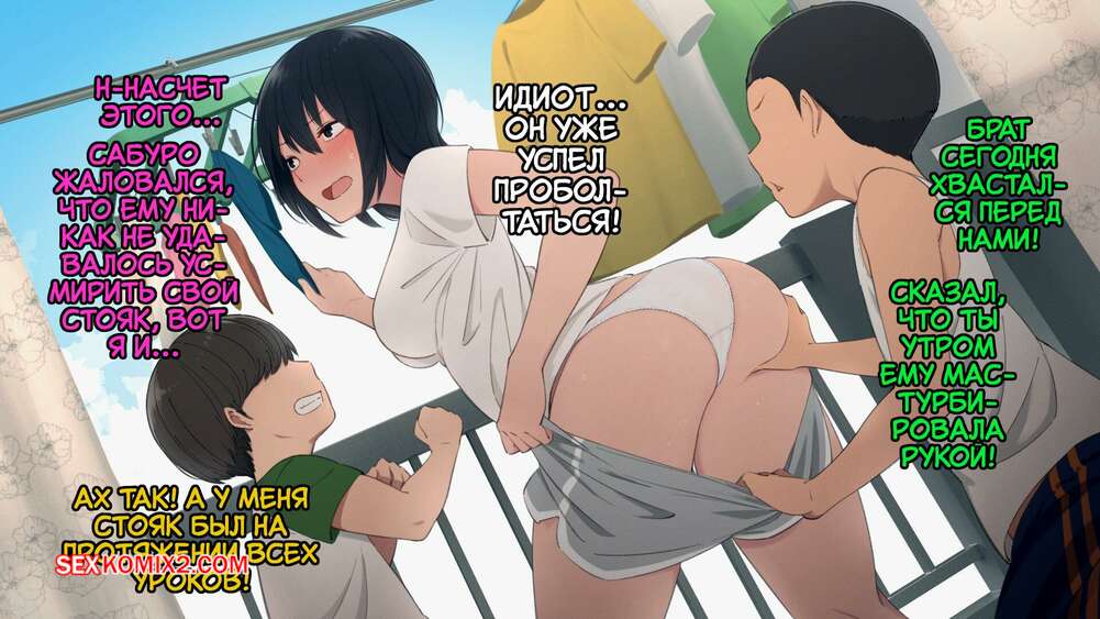 Порно комикс Глупые обстоятельства одной многодетной семьи. Часть 3. Kemuri Haku Два брата были очень возбуждены и решили повеселиться со своей старшей сестрой. Красотка показала им свои большие сиськи, после чего стала ласкать их члены.
