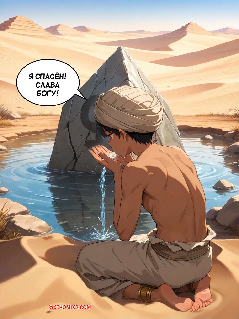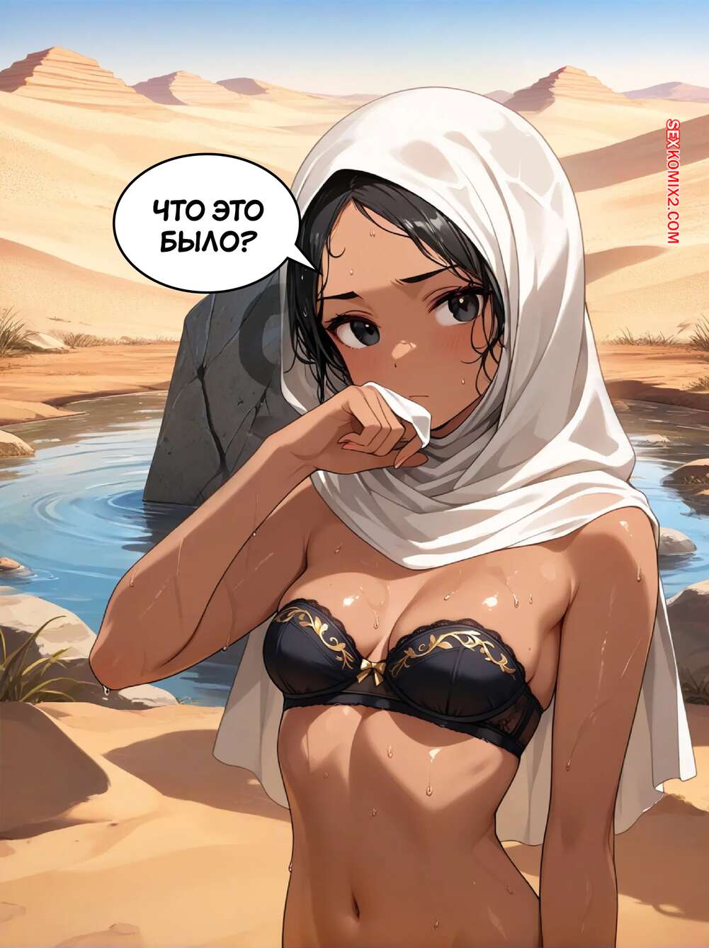 Порно комикс Запретный оазис. The Forbidden Oasis. Su Voon Art Юный парень блуждал в пустыне и нашел источник воды. Он поспешил из него попить, в результате чего превратился в сексуальную брюнетку с шикарным телом и аппетитными формами.