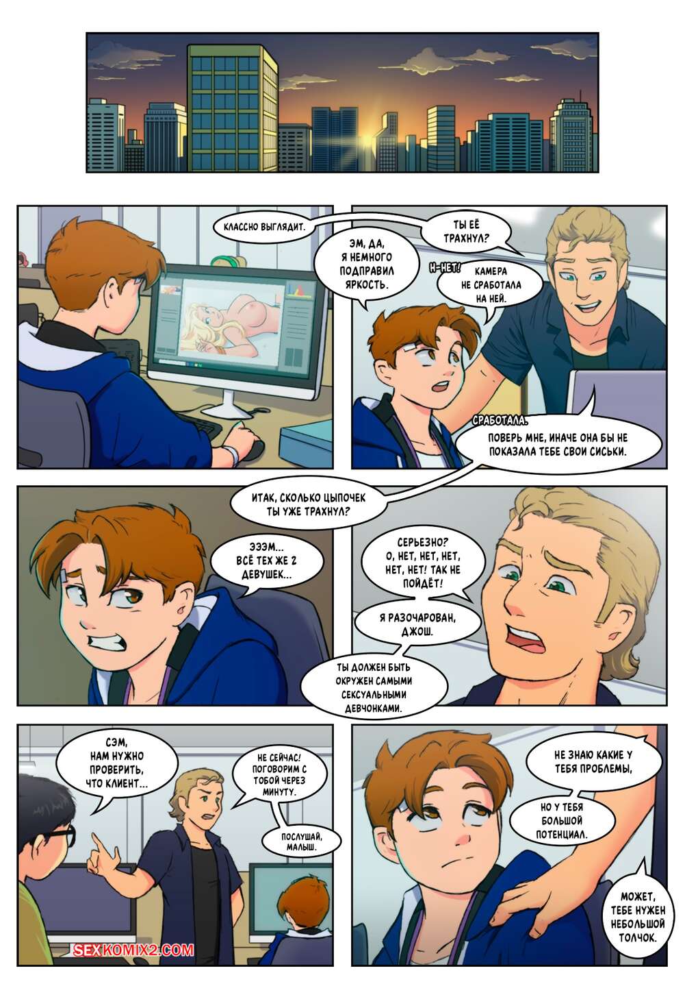 Порно комикс Гарем Студия. Часть 8. Harem Studio. BloodLust Парень отправился в ночной клуб, где горячие красотки решили его порадовать. Они стали танцеваться для юного парнишки, после чего дали ему себя хорошенько выебать.