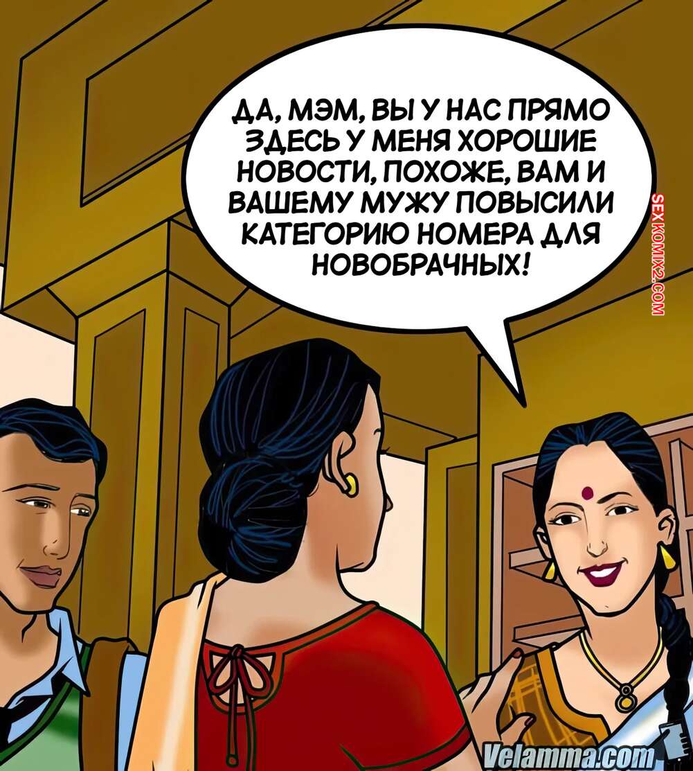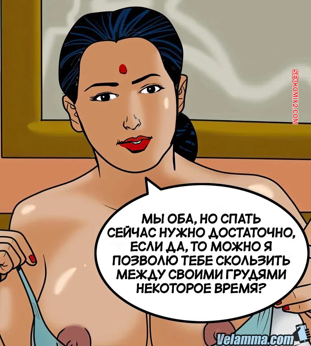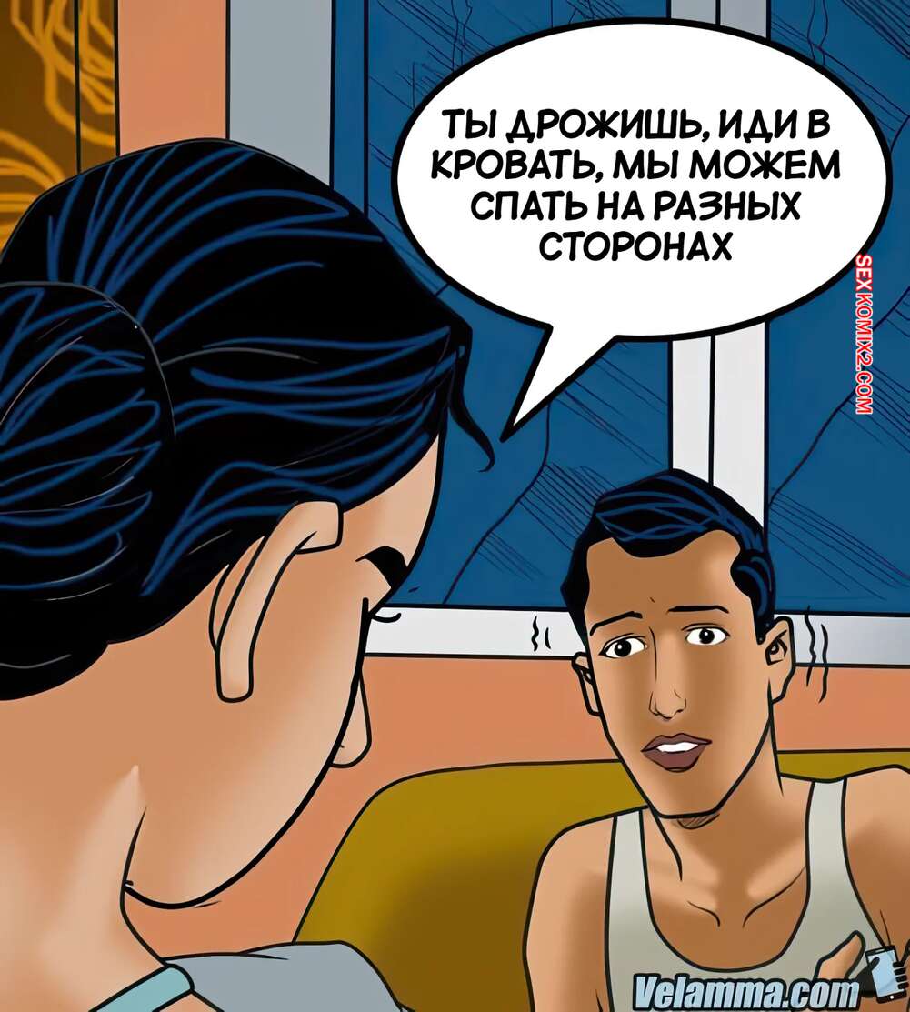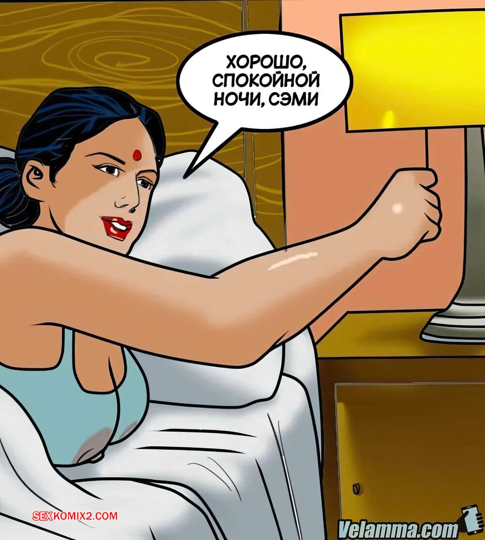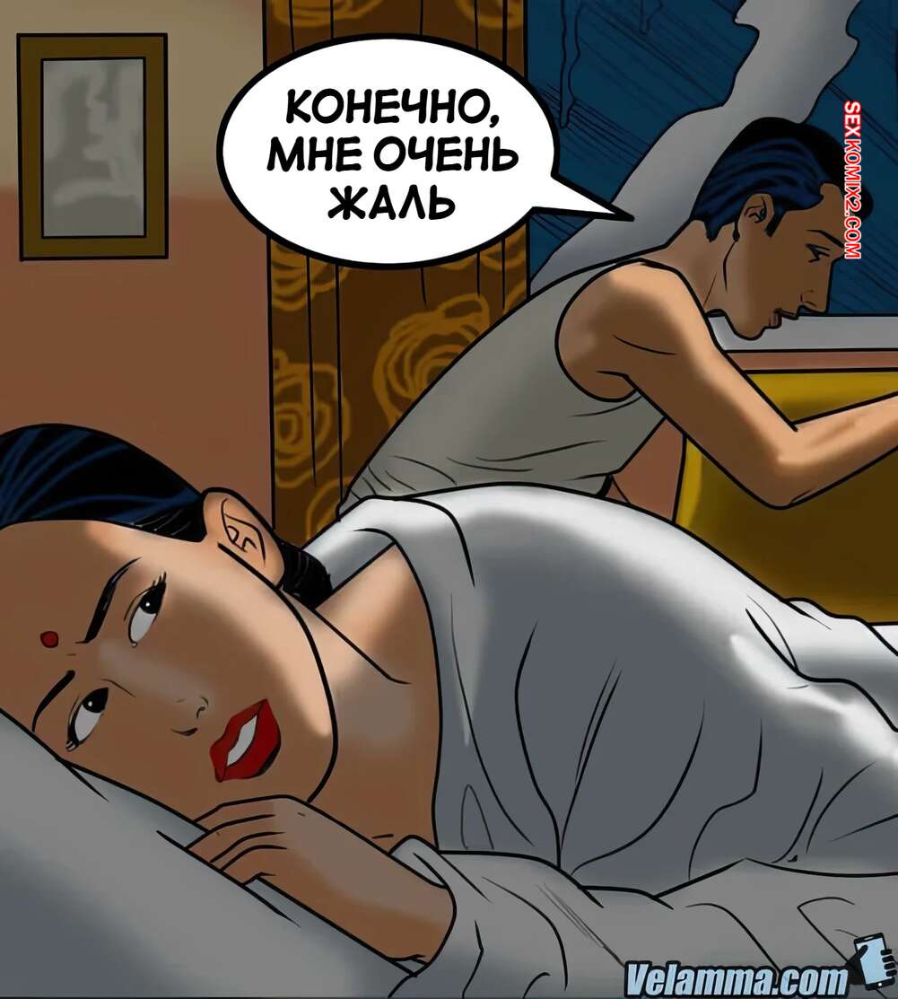 Порно комикс Веламма. Часть 55. Velamma. Velamma Горячая милфа легла спать с молодым парнем в одной постели, от чего он был поражен. Парнишка сильно возбудился и достал свой член, чтобы как следует выебать пизденку сисястой брюнетки.