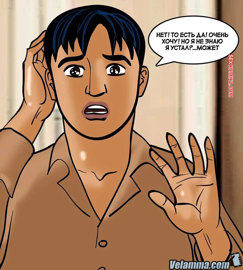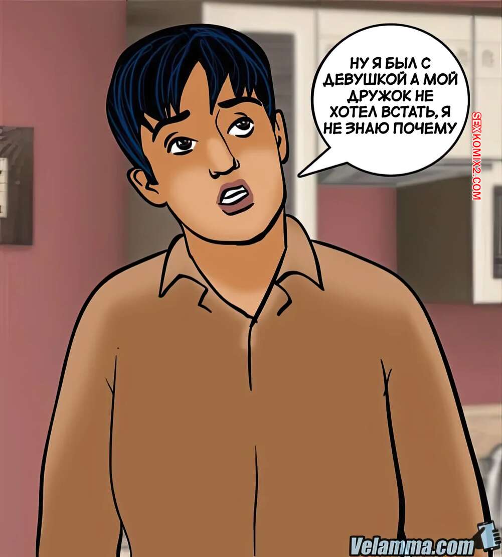Порно комикс Веламма. Часть 61. Velamma. Velamma Горячая милфа Веламма занималась уборкой по дому и решила повеселиться с молодым парнем. Она разделась и отсосала его большой хуй, после чего дала себя выебать.