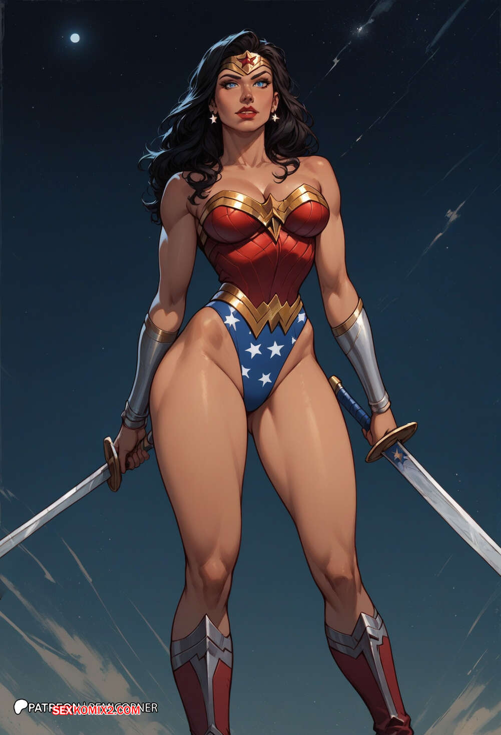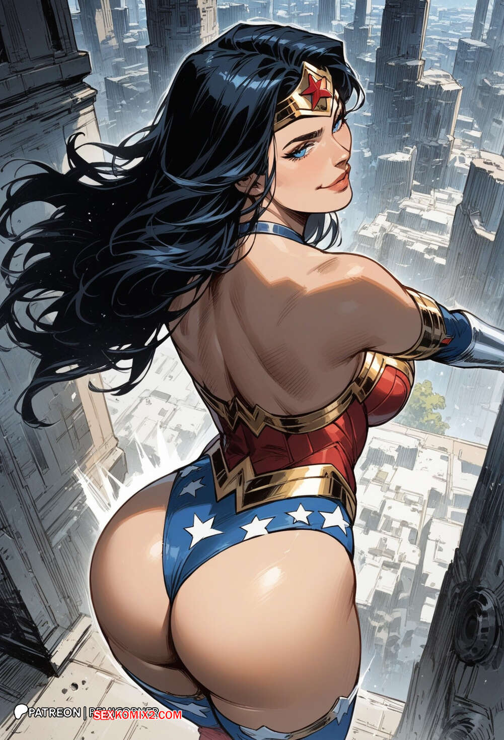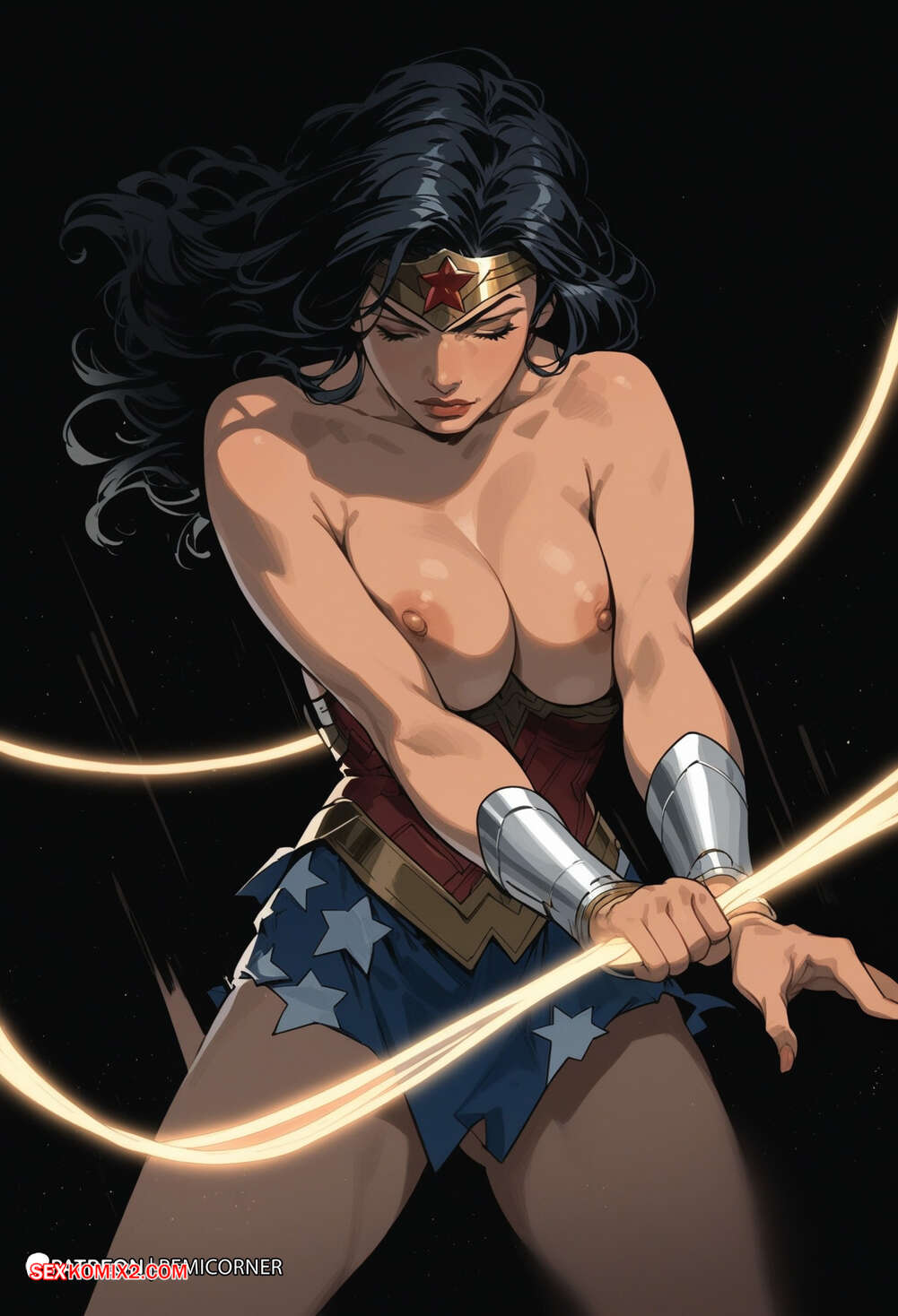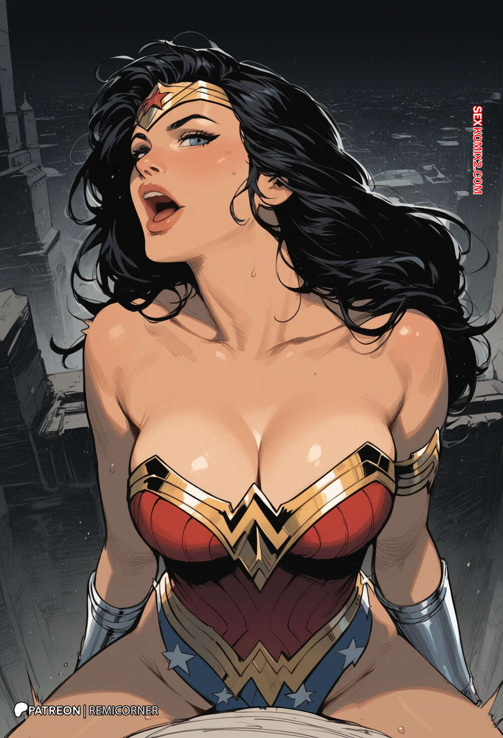 Порно комикс DC Wonder Woman Горячая брюнетка Чудо Женщина была очень возбуждена и решила повеселиться со своим дружком. Она разделась и отсосала большой хуй парня, после чего дала ему себя хорошенько выебать.