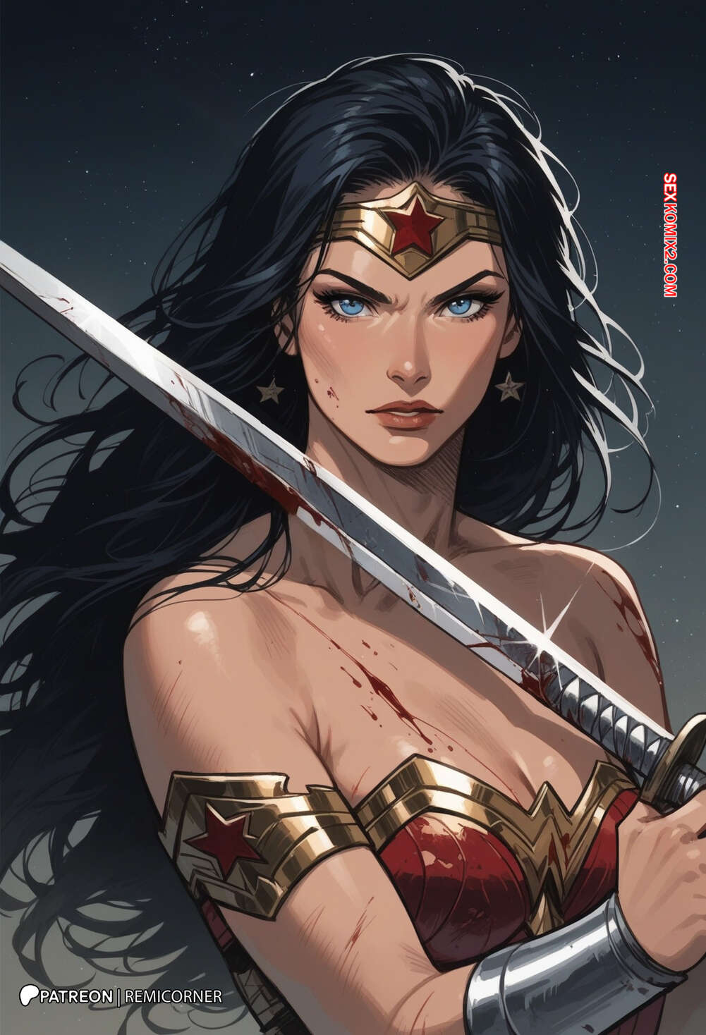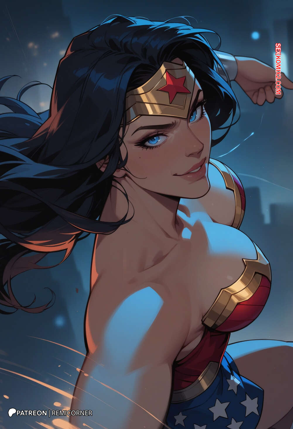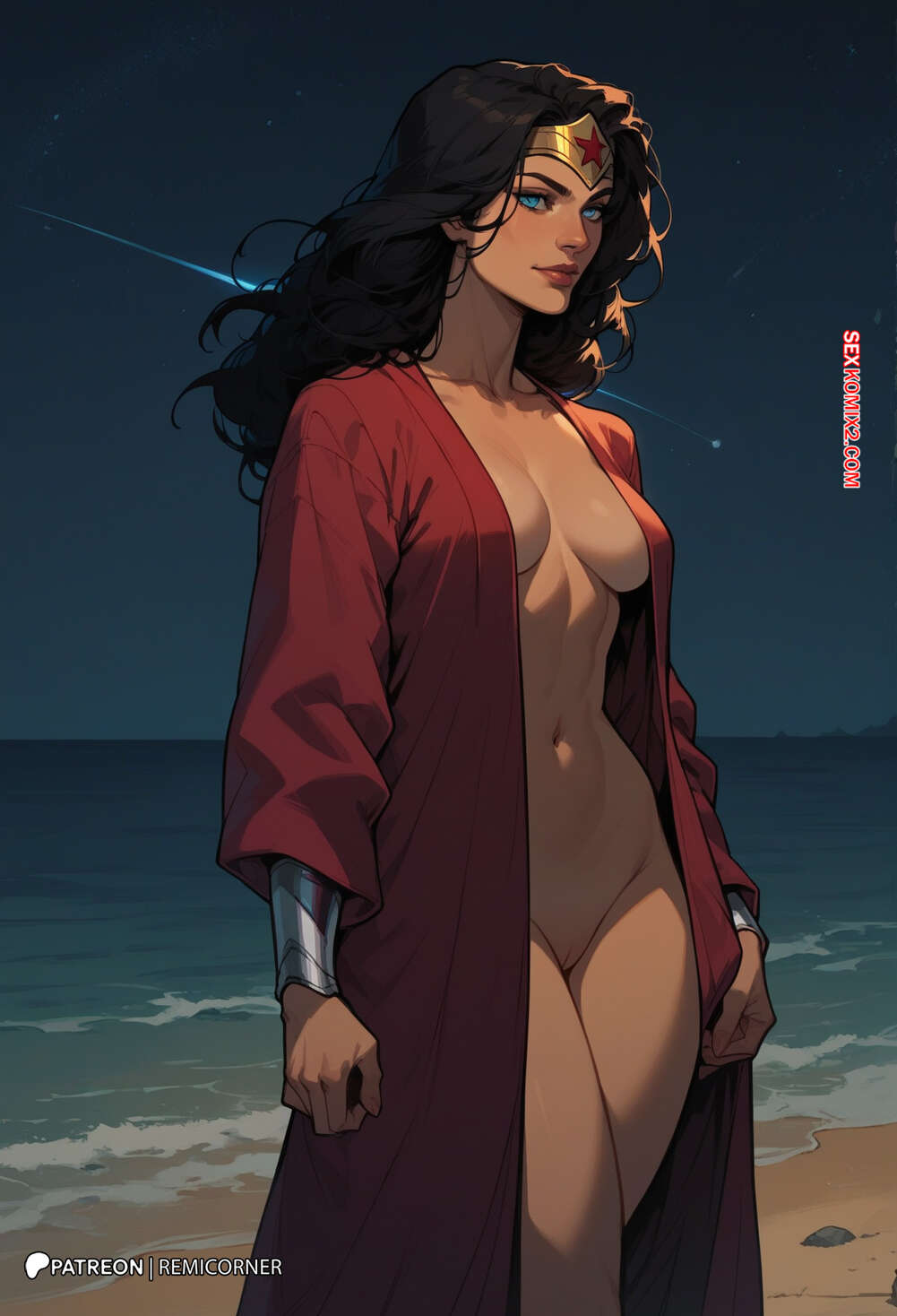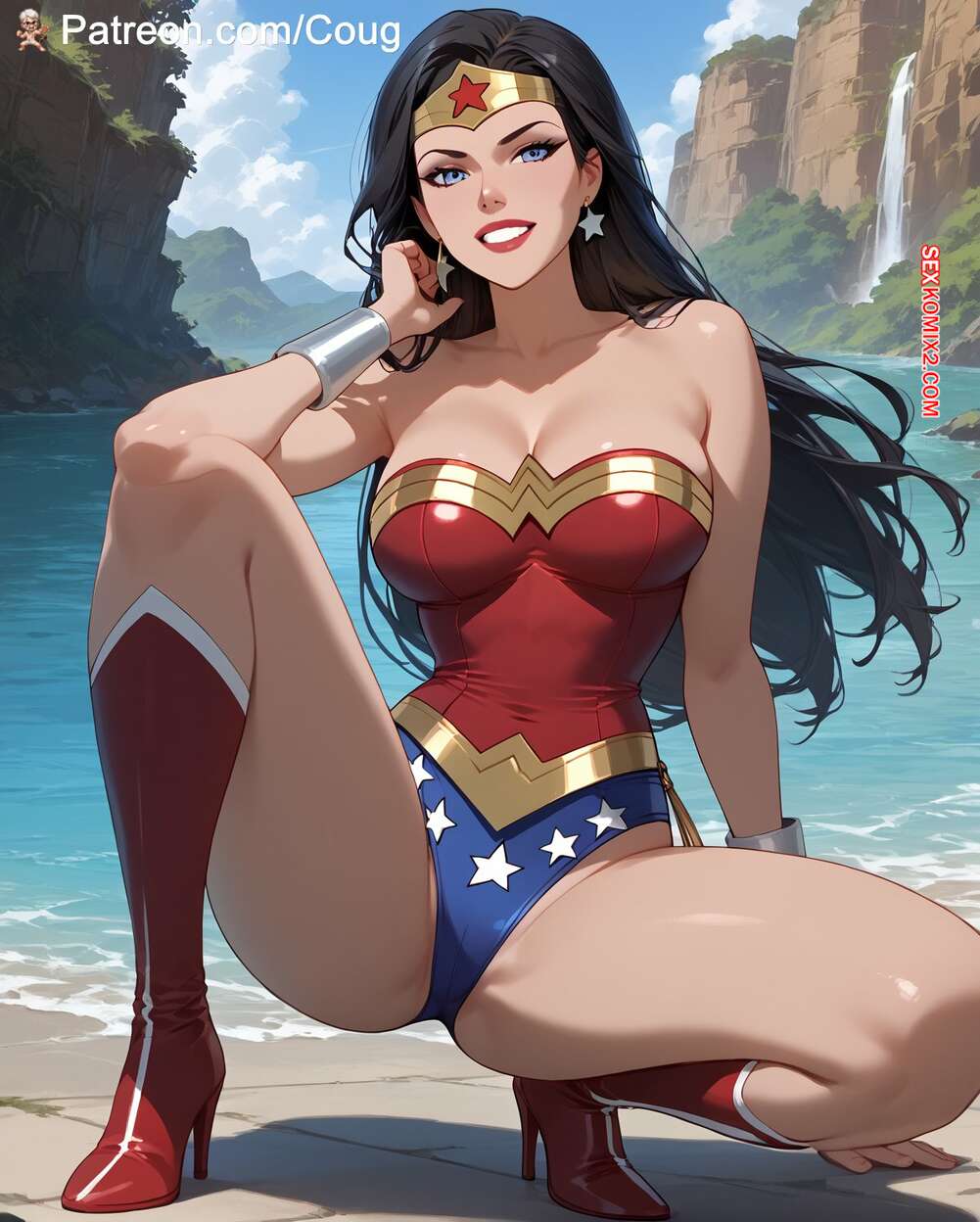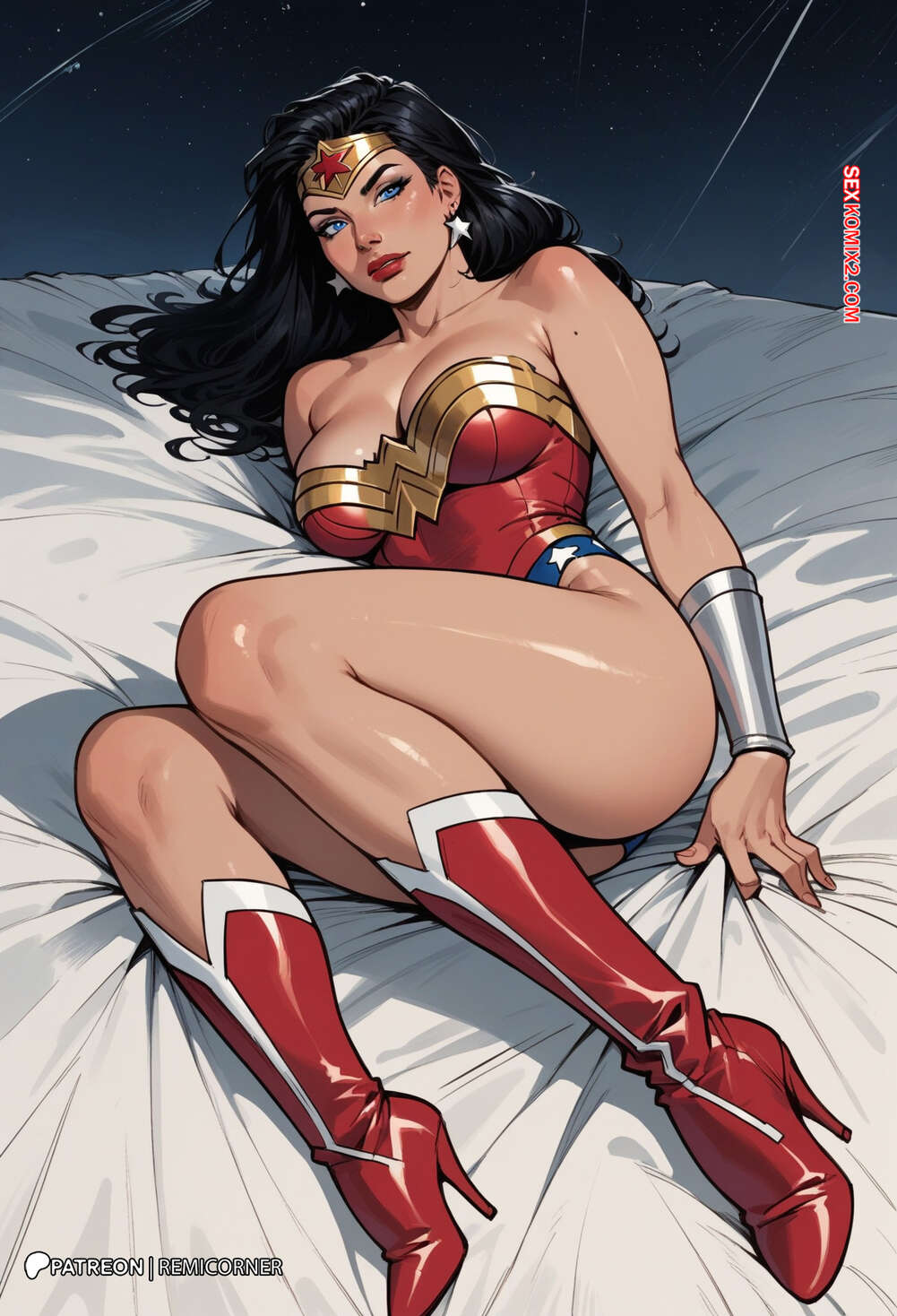 Порно комикс DC Wonder Woman Горячая брюнетка Чудо Женщина была очень возбуждена и решила повеселиться со своим дружком. Она разделась и отсосала большой хуй парня, после чего дала ему себя хорошенько выебать.