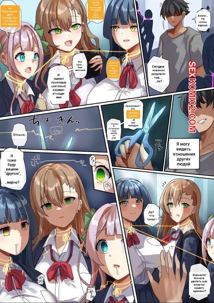 Порно комикс Способность окрашивать отношения. RSI Парень загипнотизировал горячих красоток, желая с ними повеселиться. Девушки разделись и отсосали большой хуй парня, после чего оседлали его член и дали себя выебать.