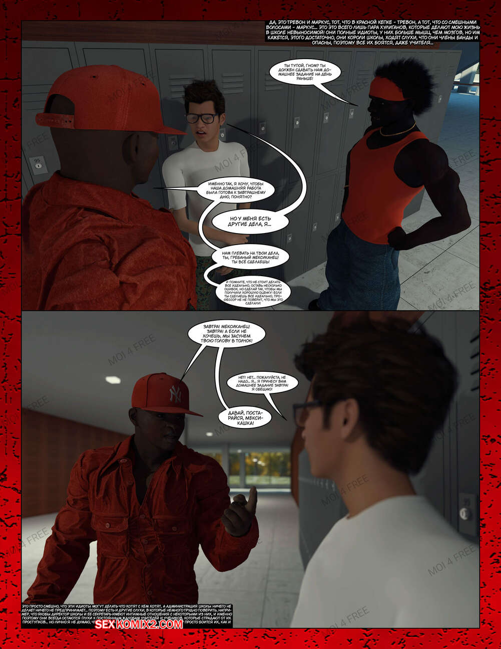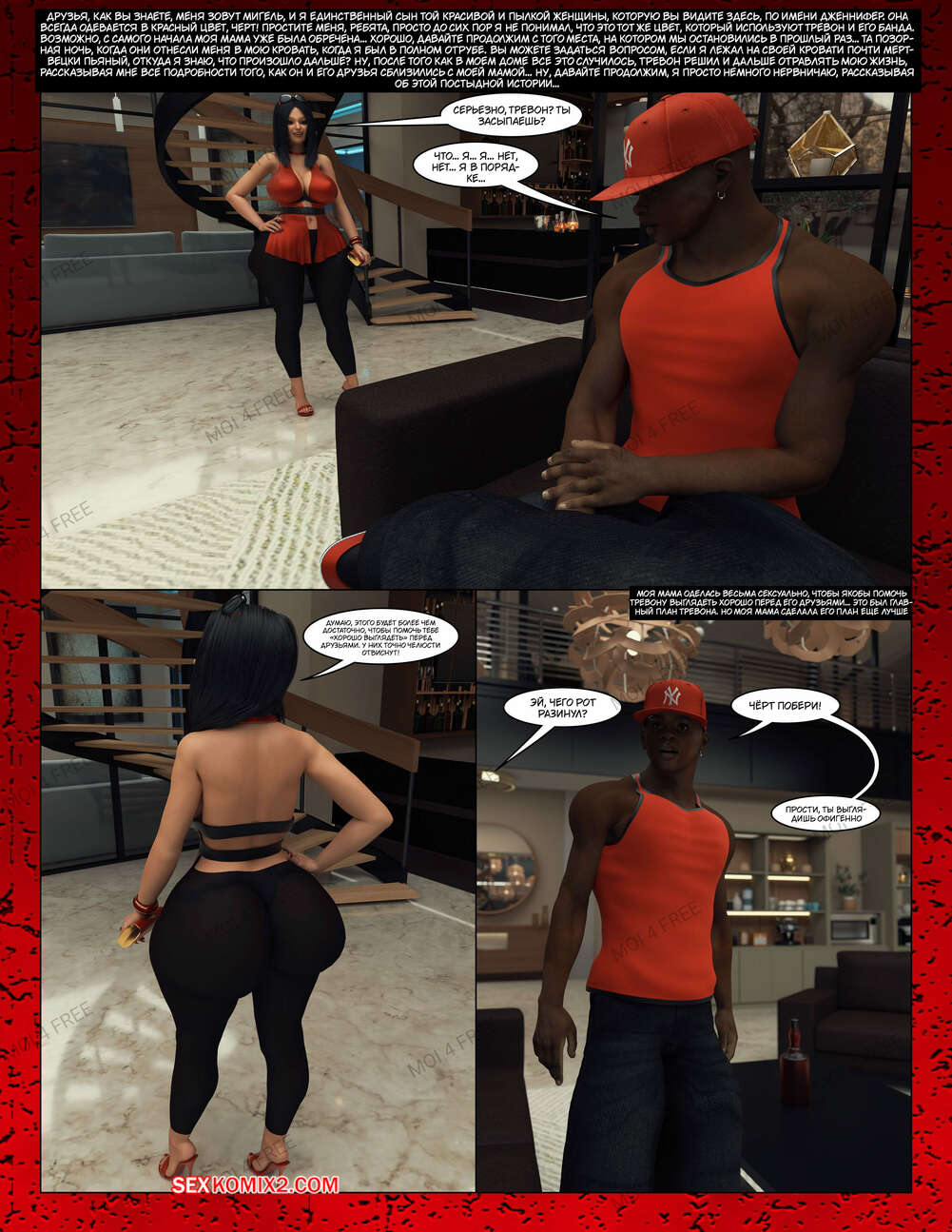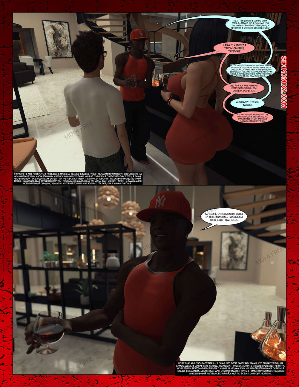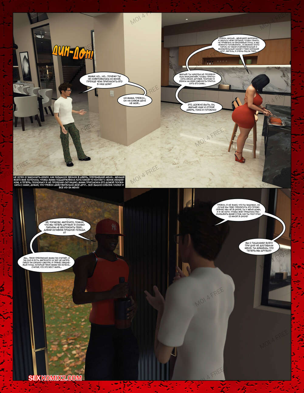 Порно комикс Всё для моего сына. Части с 1 по 6. Everything For My Son. Moiarte3D Темнокожий парень задирает парня в школе, поэтому его мамка решила разобраться с проблемой. Она позвала задиру на встречу и согласилась трахаться с ним в обмен на то, чтобы хулиган оставил ее сына впокое.