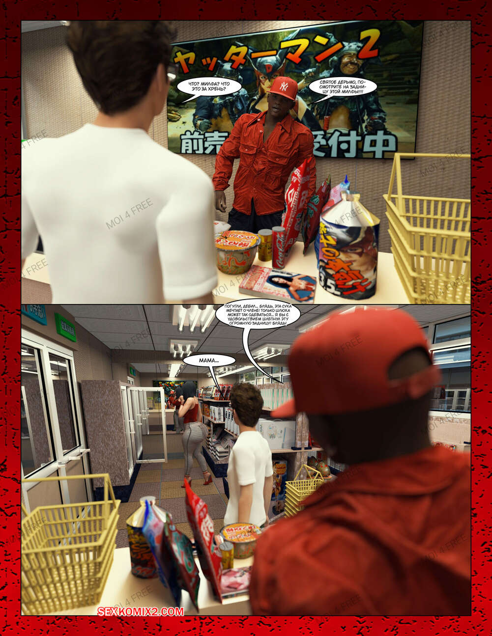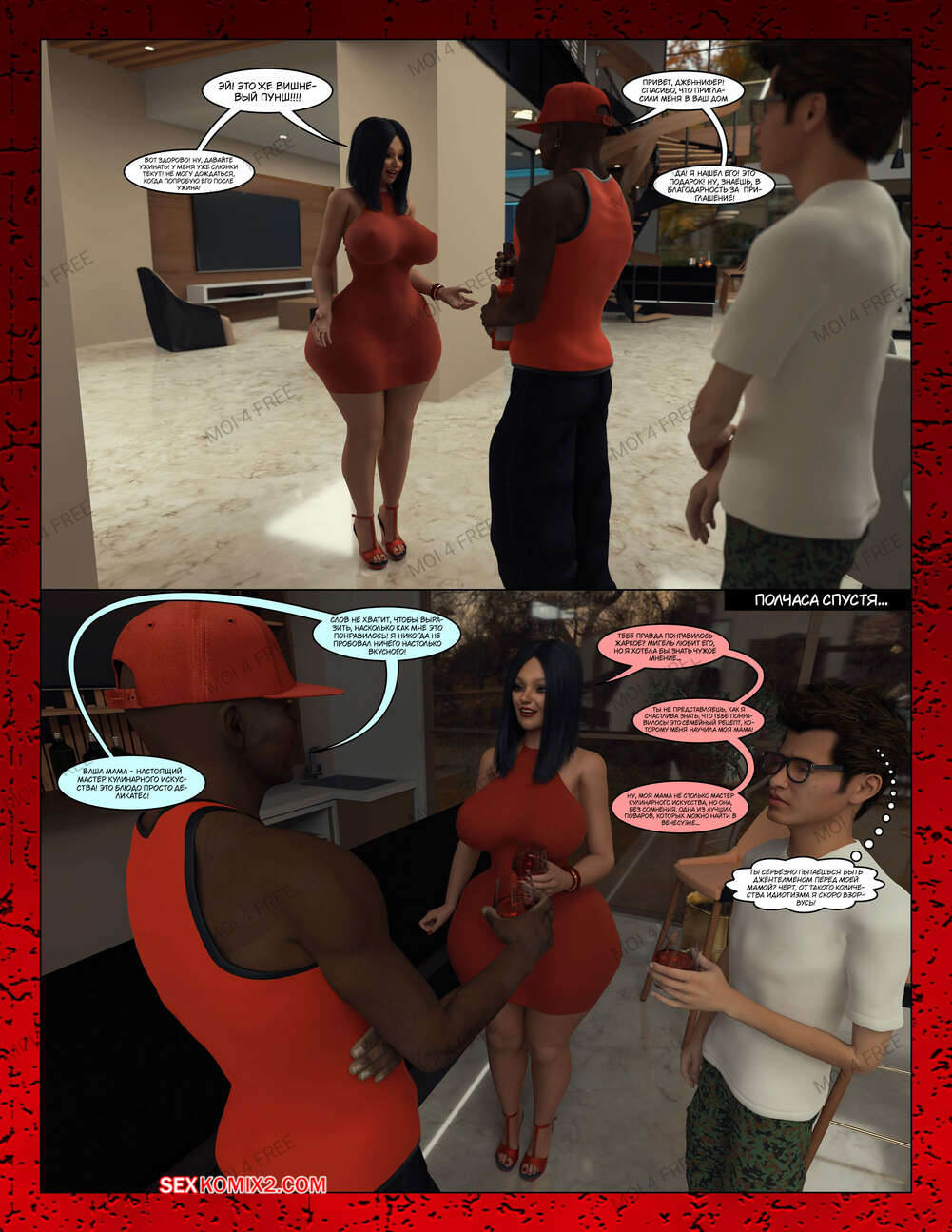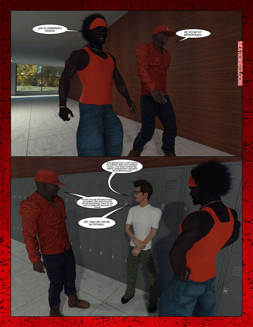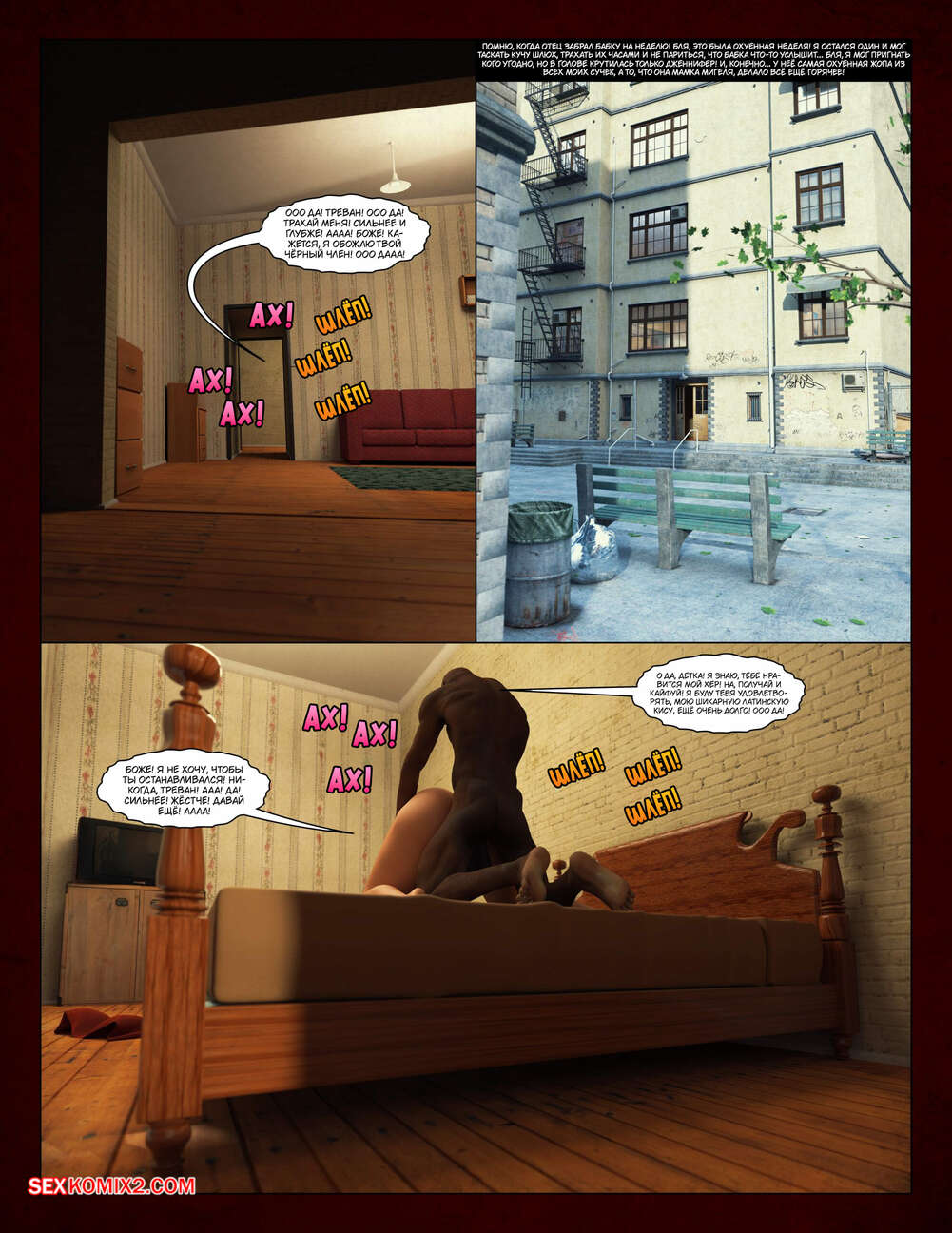 Порно комикс Всё для моего сына. Части с 1 по 6. Everything For My Son. Moiarte3D Темнокожий парень задирает парня в школе, поэтому его мамка решила разобраться с проблемой. Она позвала задиру на встречу и согласилась трахаться с ним в обмен на то, чтобы хулиган оставил ее сына впокое.
