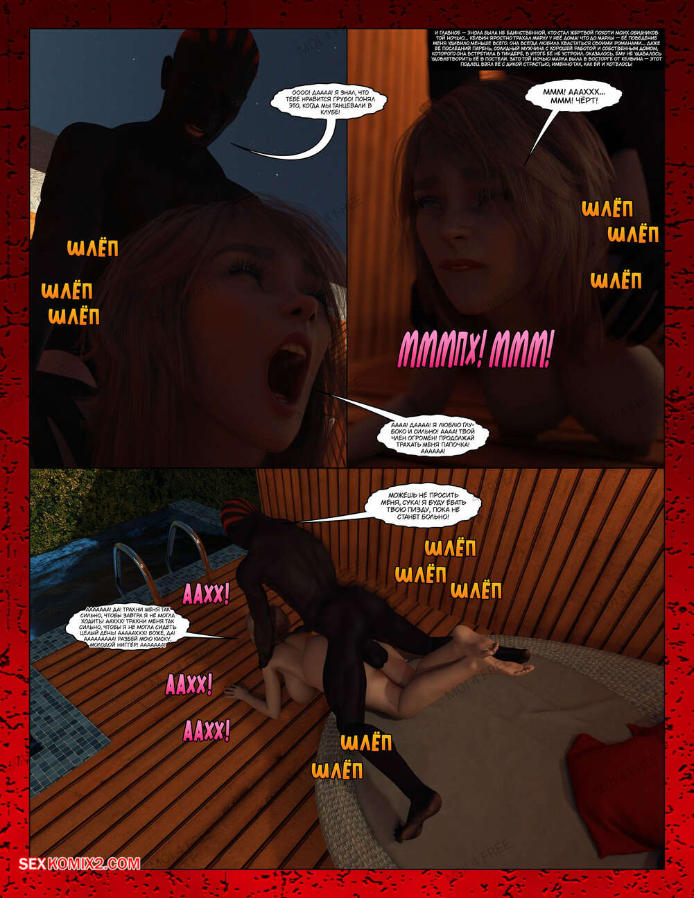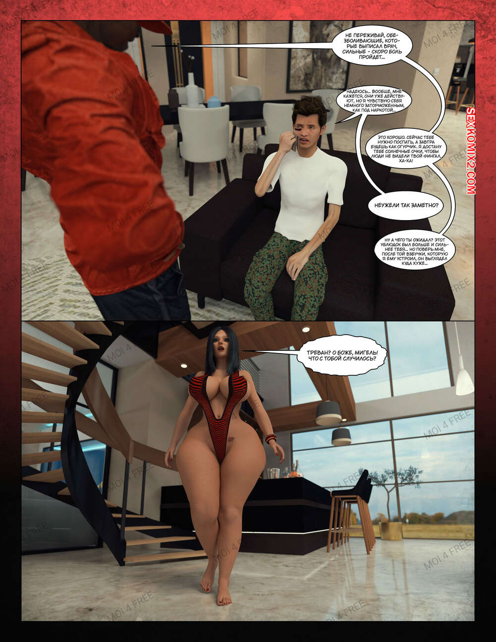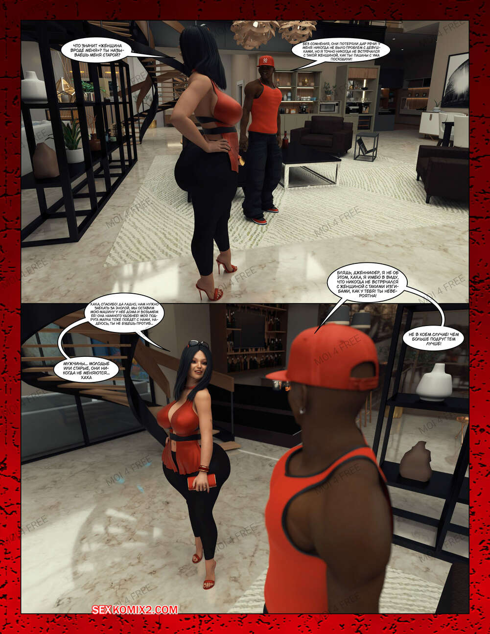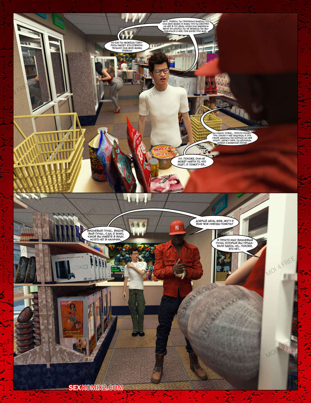 Порно комикс Всё для моего сына. Части с 1 по 6. Everything For My Son. Moiarte3D Темнокожий парень задирает парня в школе, поэтому его мамка решила разобраться с проблемой. Она позвала задиру на встречу и согласилась трахаться с ним в обмен на то, чтобы хулиган оставил ее сына впокое.