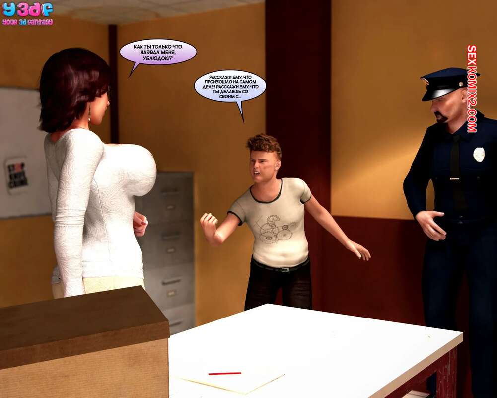 Порно комикс Ревность. Jealousy. Y3DF. Джейсон с тетей отправились в полицейский участок, где им устроили допрос. Парень придумал историю и рассказал полицейскому, как его горячая тетушка связала паренька и трахнула его.
