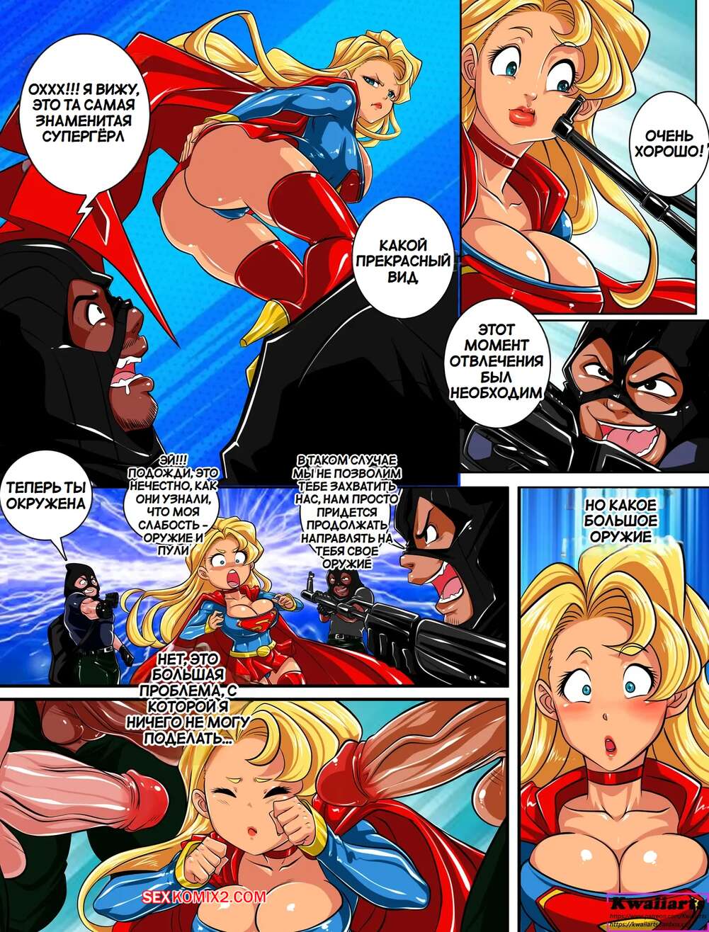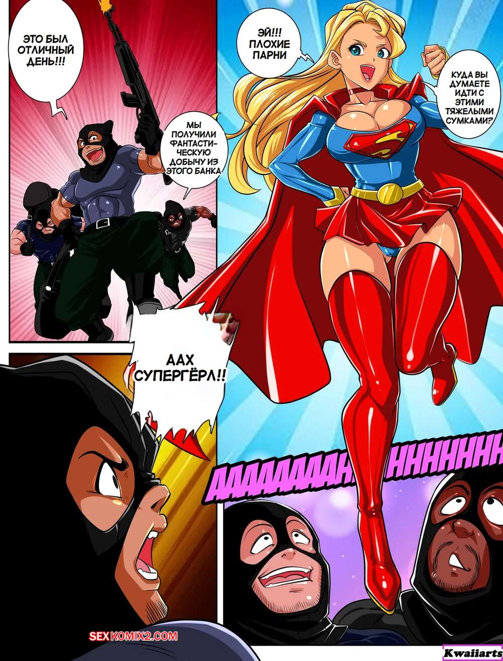 Порно комикс Superman. Супергерл и Пауэргерл. Supergirl and Powergirl. Kwaiiarts. Супергерл столкнулась с бандитами, которые соблазнили девушку большими членами и хорошенько ее выебали. К ней на помощь пришла Пауэргерл и тогда две подруги затрахали злодеев, пока у них не закончились силы.
