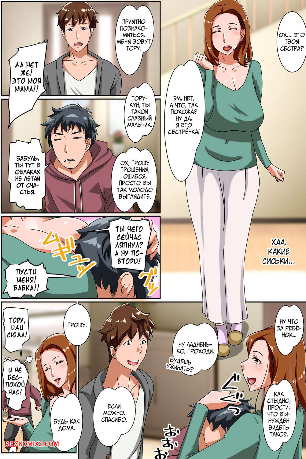 Порно комикс Шлюховатая мамка. Tetsukui Парень вернулся домой со школы, где его ждала горячая возбужденная мамочка. Она разедалась и возбудила сына шикарным телом, после чего дала ему себя выебать.