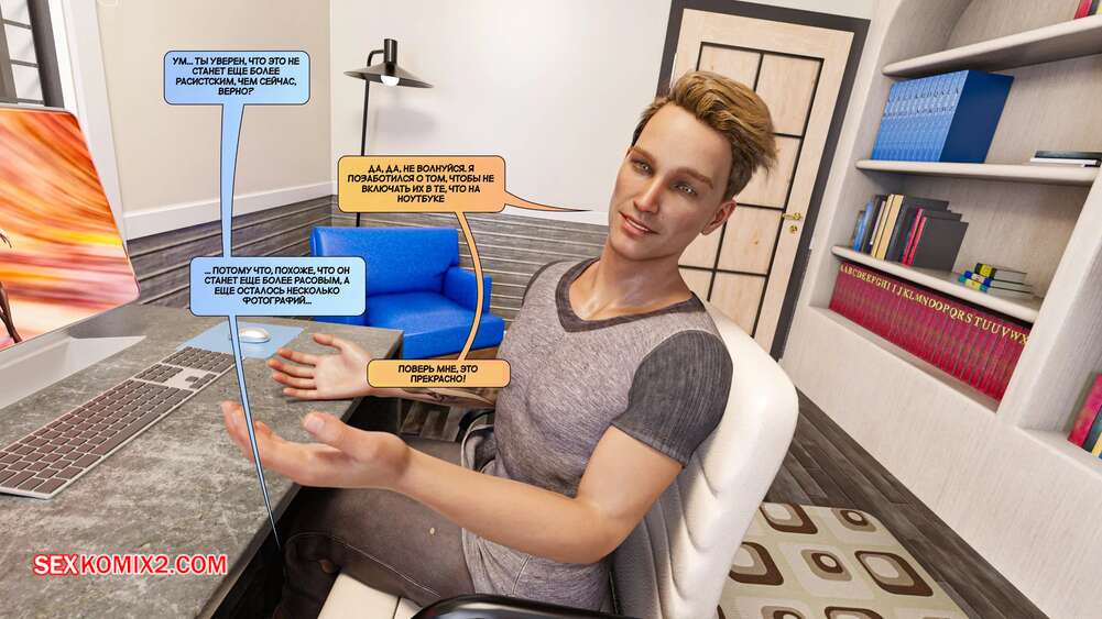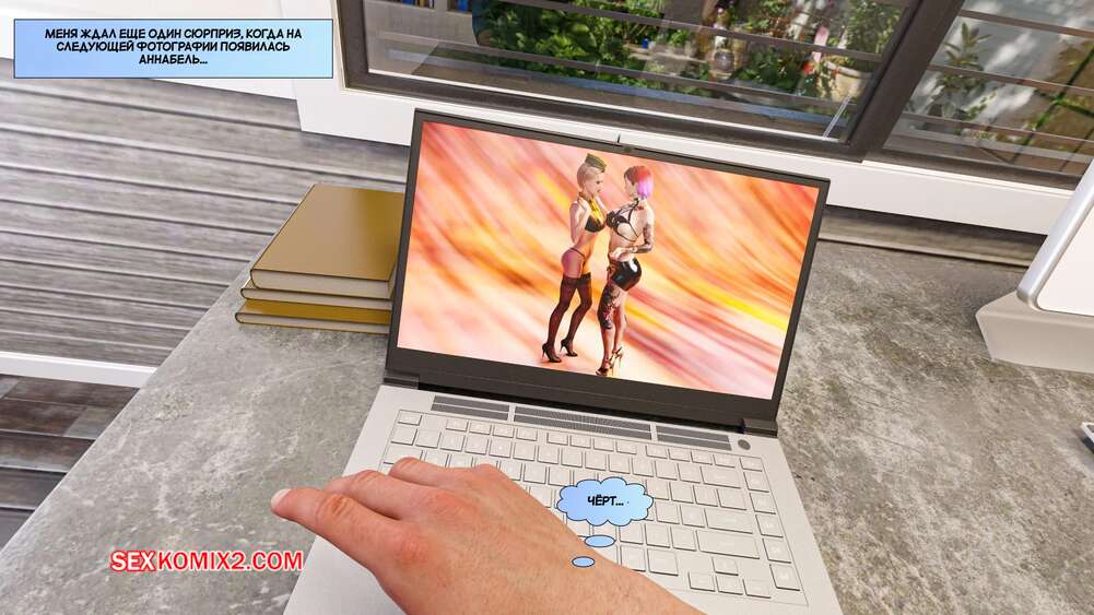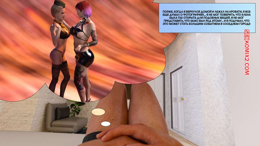 Порно комикс Новые соседи. Часть 5. The New Neighbors. Antalore42 Адам смотрел на запись двух горячих красоток и очень возбудился. Он отправился в постель и стал дрочить свой член, фантазируя как девушки занимаются лесбийской еблей.