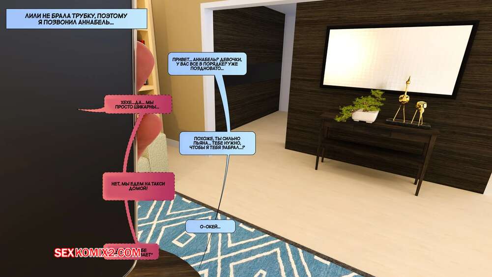 Порно комикс Новые соседи. Часть 13. The New Neighbors. Antalore42 Аннабель пришла домой к Лили и Адаму в сексуальном наряже, где решила повеселиться с соседкой. Она стала ласкать ее пизденку язычком, после чего девушки занялись лесбийской еблей.