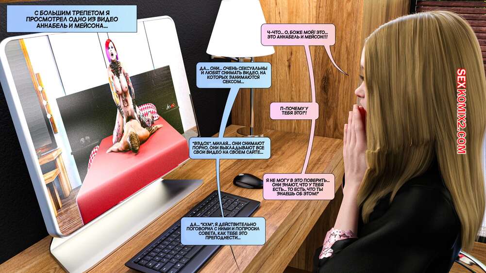 Порно комикс Новые соседи. Часть 14. The New Neighbors. Antalore42 Лили узнала, что Адам смотри порно со своими соседями, и это ей очень не понравилось. Они отправились к психологу, которая помогла им наладить отношения. Но вскоре Адам вновь вернулся к просмотру порно с Аннабель.