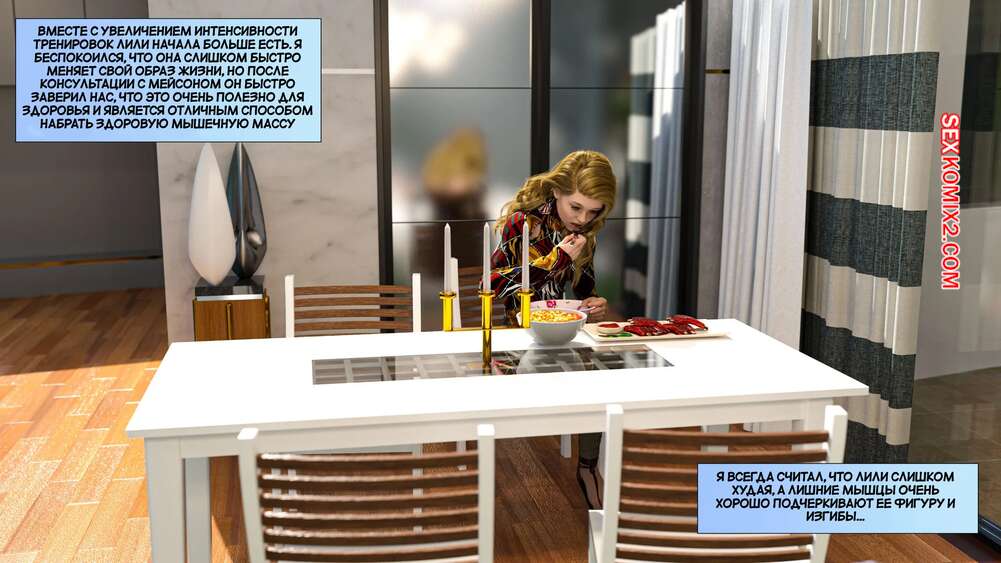 Порно комикс Новые соседи. Часть 17. The New Neighbors. Antalore42 Аннабель и Мейсон пригласили своих соседей к себе домой, чтобы они помогли им со съемкой порно. Адам и Лили стали наблюдать, как друзья трахаются, после чего Адам тоже принял небольшое участие в съемке.