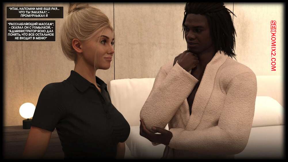 Порно комикс Черная метка. Нова. Blackmaled. Nova. Sexy3DComics Горячая блондинка работает массажисткой в отеле и ее вызвал к себе темнокожий парень. Девушка приступила за работу и была поражена огромным членом клиента. Красотка разделась и отсосала хуй парня, после чего дала ему себя выебать.