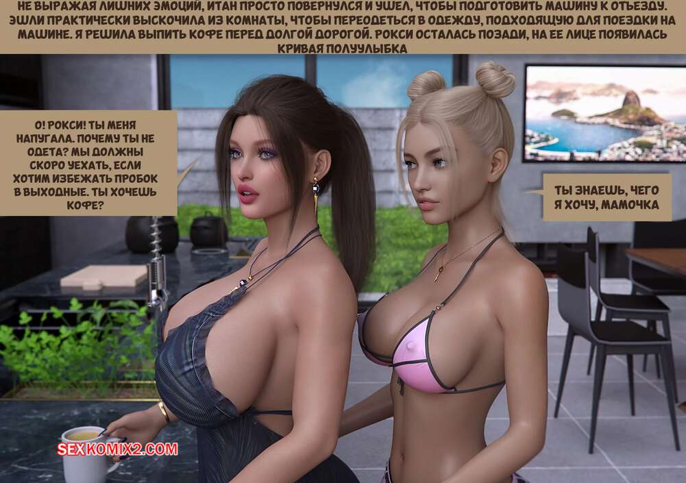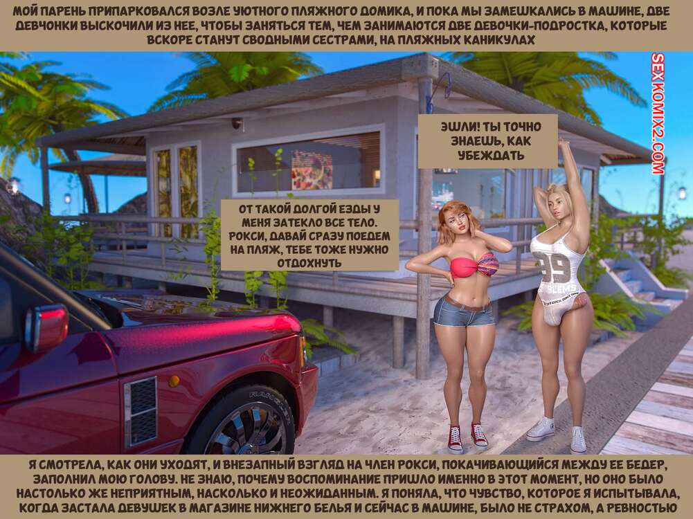 Порно комикс Семейные тайны. Часть 2. Family Secrets. Shockabuki Семейка отправилсь на пляж, где блондиночка продолжает ублажать других красоток своим членом. Они хорошенько сосут ее большой хуй, после чего дают себя выебать во все дырочки.