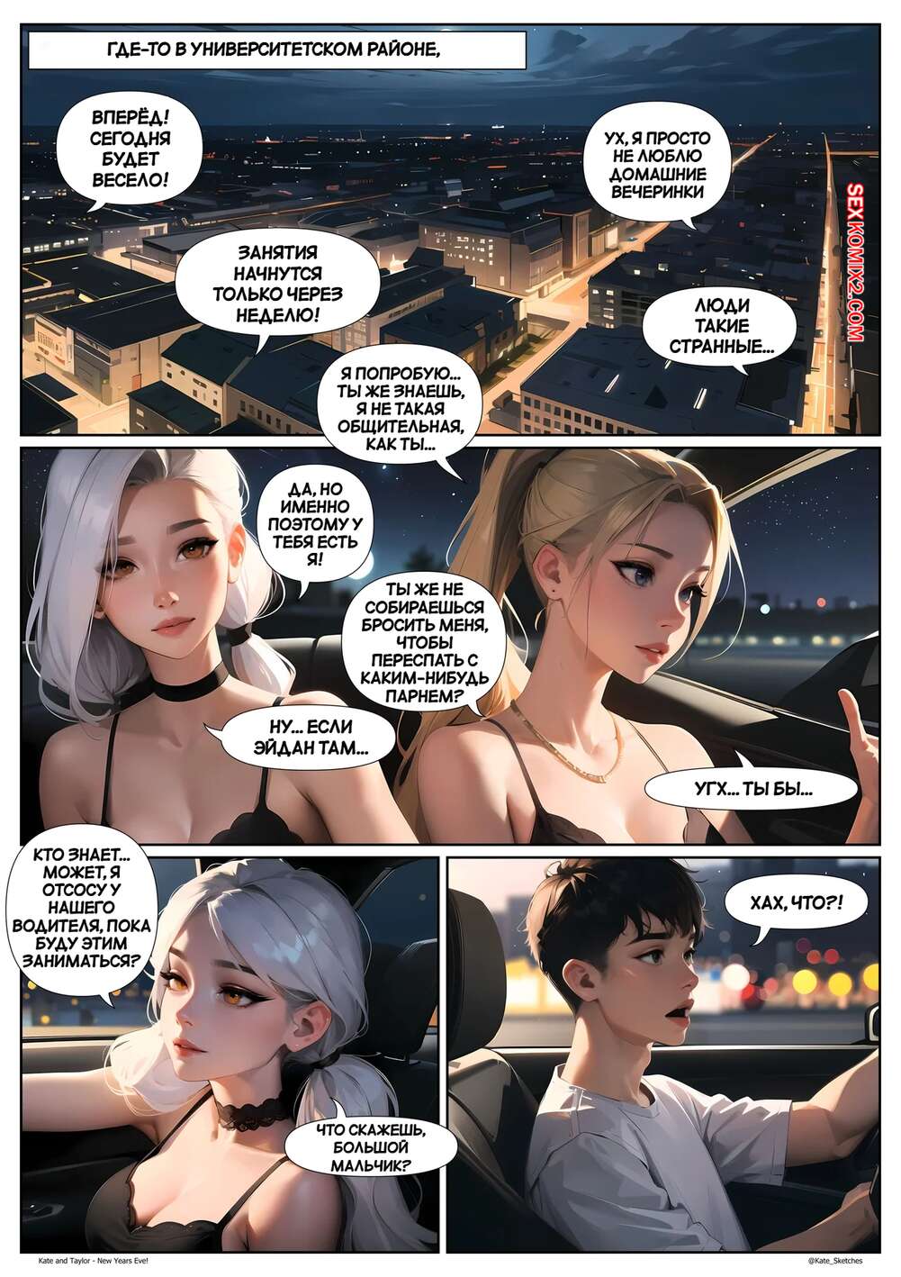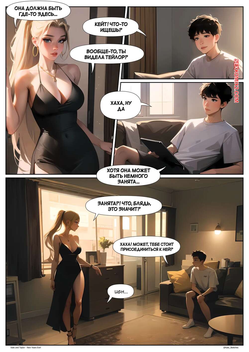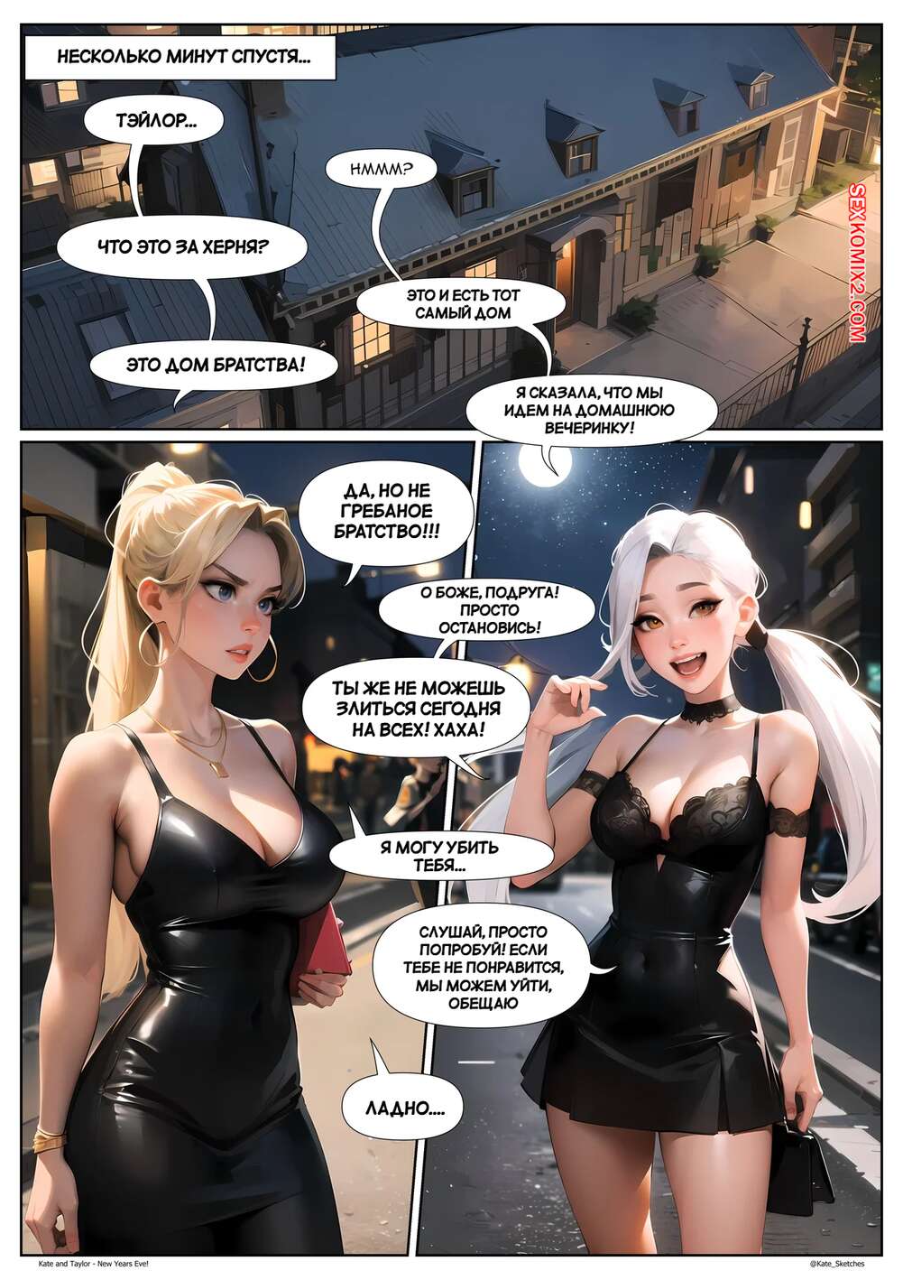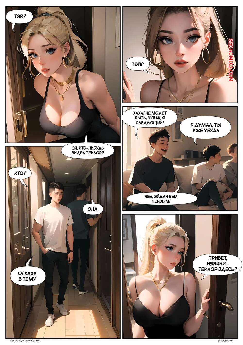 Порно комикс Кейт и Тэйлор. Канун нового года. Kate and Taylor. New Years Eve. Kate Sketches. Две горячие блондинки отправились на вечеринку в канун нового года. Там одна из девушек пошла гулять по дому и оказалась в комнате с несколькими парнями. Они дале девушке отсосать свои члены, после чего кончили ей на лицо.