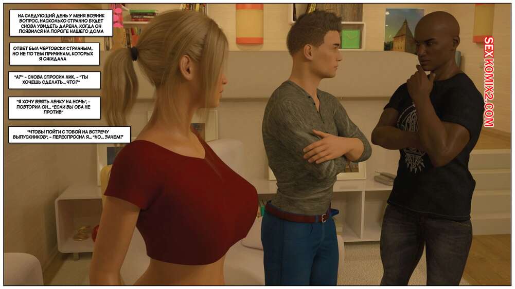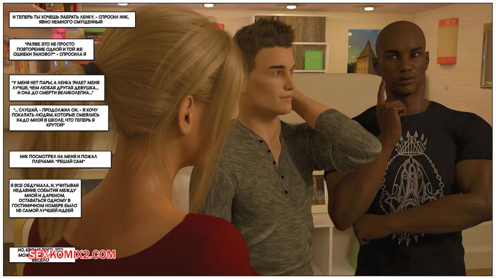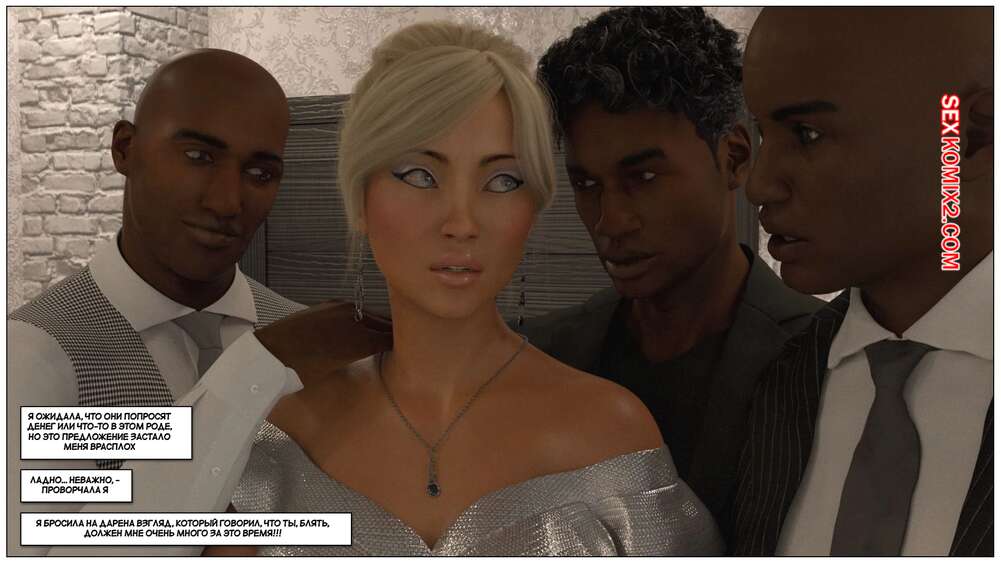Порно комикс Черная метка. История Лены. Часть 3. Blackmaled. Lenkas Story. Sexy3DComics Горячая блондинка встретилась с темнокожими парнями, желая повеселиться. Она разделась и отсосала их большие хуи, после чего дала им себя хорошенько выебать во все дырочки.