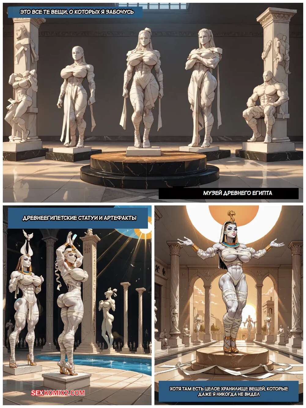 Порно комикс Return Of The Mummy. PROXY Девушка мумия вернулась к жизни и сразу решила повеселиться с парнем охранником. Она отсосала его большой член и вернула свой человеческий облик, после чего дала ему себя выебать.