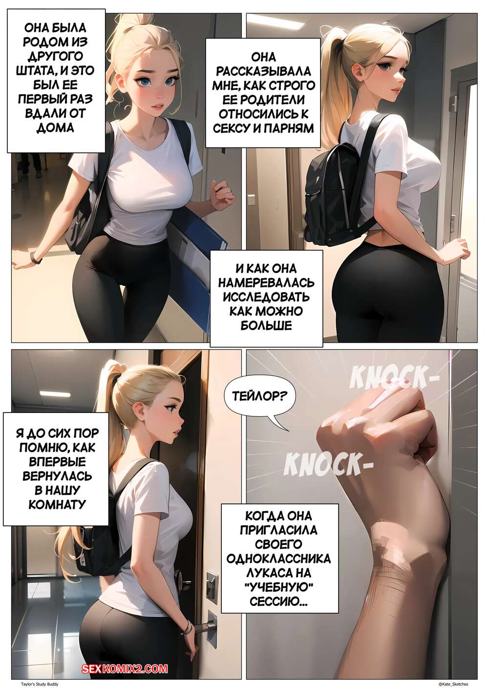 Порно комикс Учебный приятель Тейлор. Taylors Study Buddy. Kate Sketches. Горячая блондинка спешила с учебы в общагу, чтобы отправиться пообедать со своей соседкой. Войдя в комнату, она застала как соседка стоит на коленях перед парнем и сосет его член, от чего красотка возбудилась.
