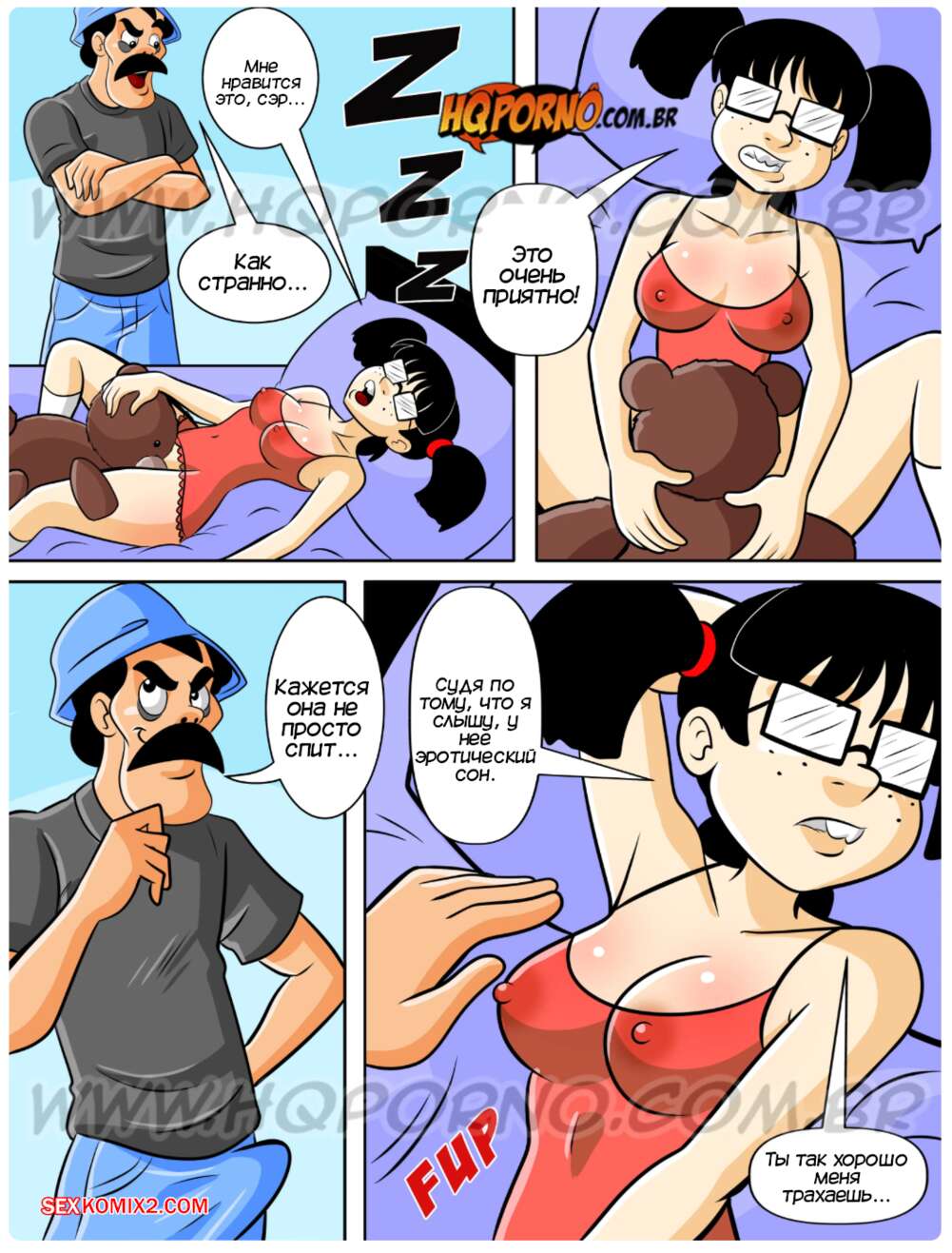 Порно комикс Чавиньо. Часть 24. Chavinho. HQporno Мадрогао услышал стоны из комнаты Чикиты. Он подумал, что девушка трахается с Чавиньо, и пошел проверить. Мужик обнаружил, что Чиките снится эротический сон, и он решил воспользоваться моментом, чтобы выебать дочку во все дырочки.