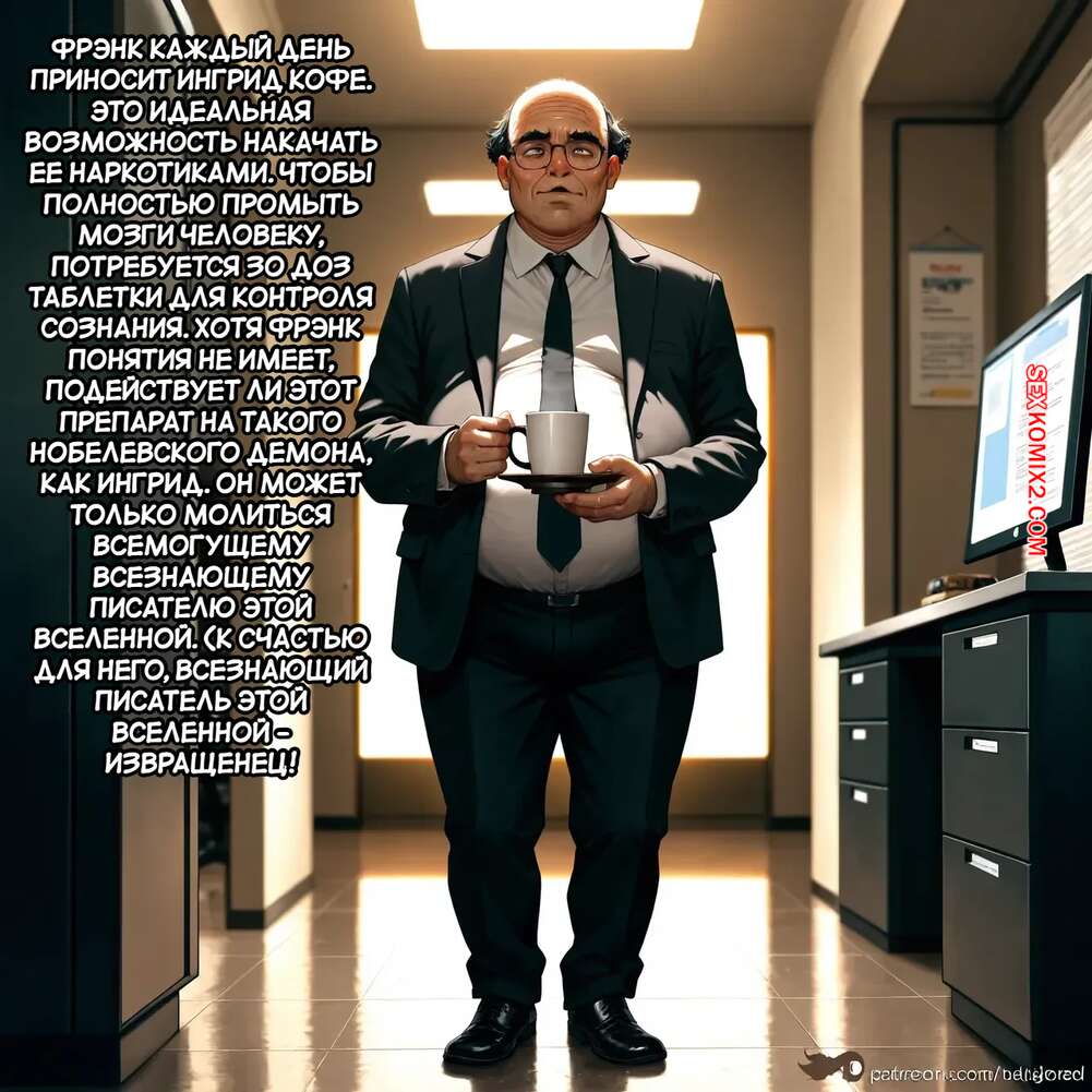 Порно комикс Месть Фрэнка. Часть 1. Franks Revenge. DeviantApeArt. Парень работает в офисе с горячей красоткой, которая иногда над ним издевается. Парень часто дрочит свой член на фотографии коллеги и теперь у нее появился шанс взять ее под контроль.