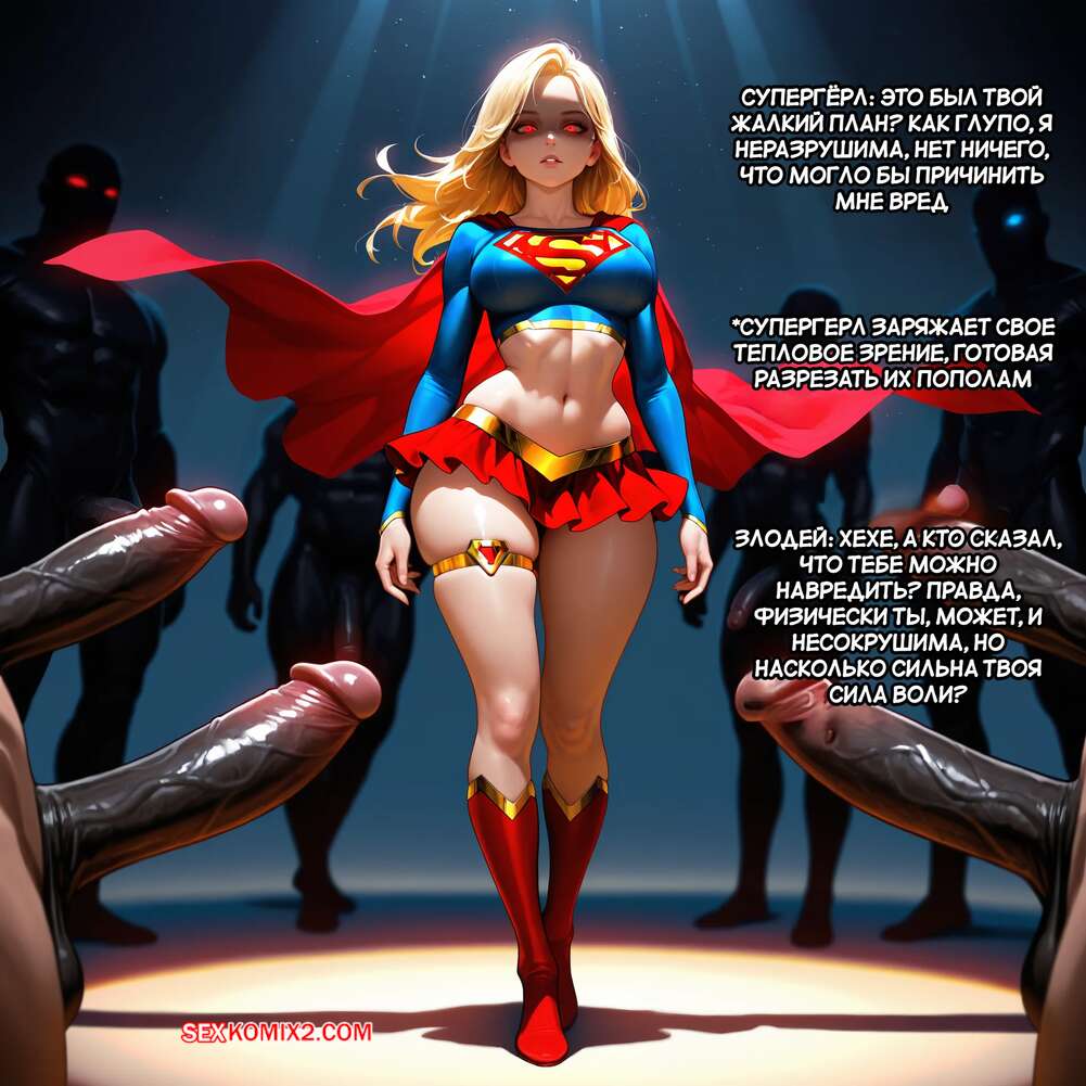 Порно комикс DC. Супергерл против гипнозного злодея. Часть 1. DeviantapeArt. Горячая блондинка Супергерл услышала зов о помощи и поскорее полетела туда. Красотка оказалась в окружении темнокожих парней, где один из них ее загипнотизировал, застав врасплох.