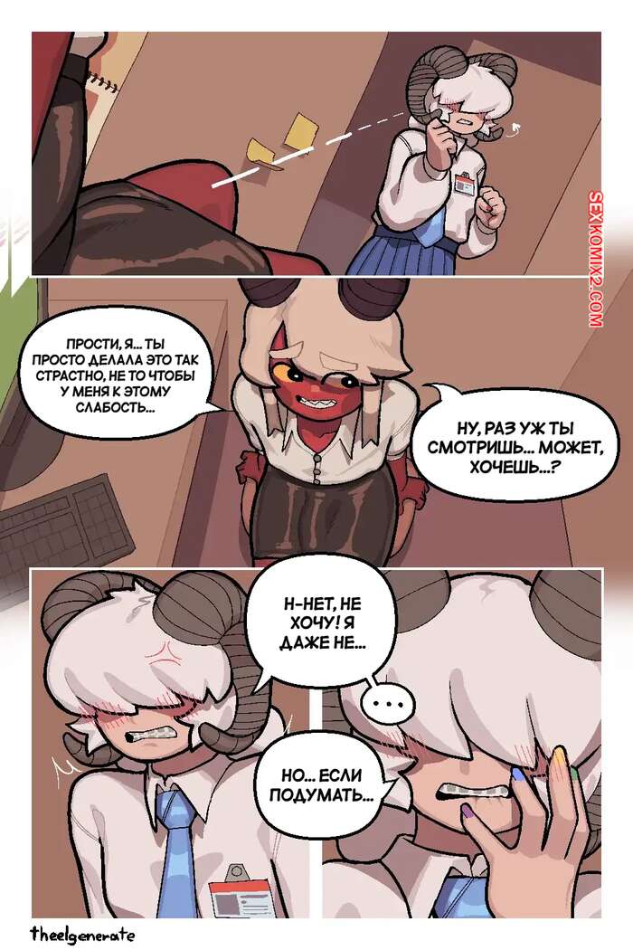 Порно комикс Сотрудник месяца. Employee of the Month. Theelgenerate. Девушка с членом была возбуждена на работе и обратилась к своей коллеге за помощью. Та сперва стеснялась, но все же села на член девушки и позволила ей трахнуть свою пизденку.