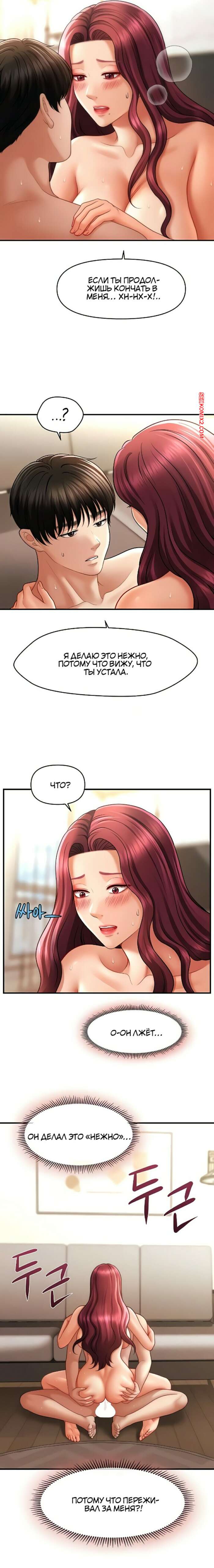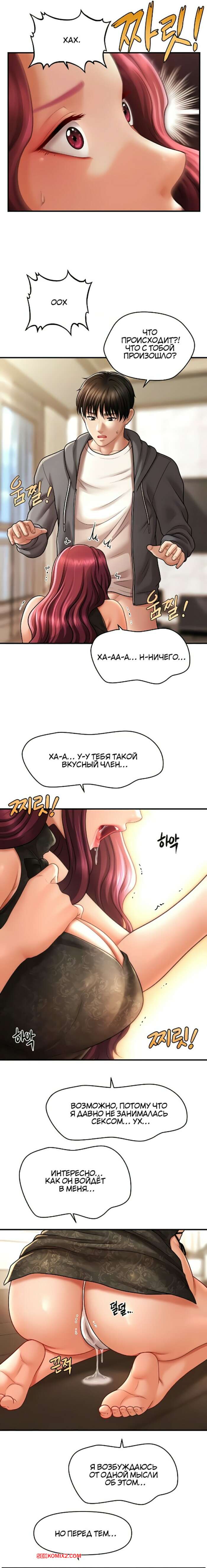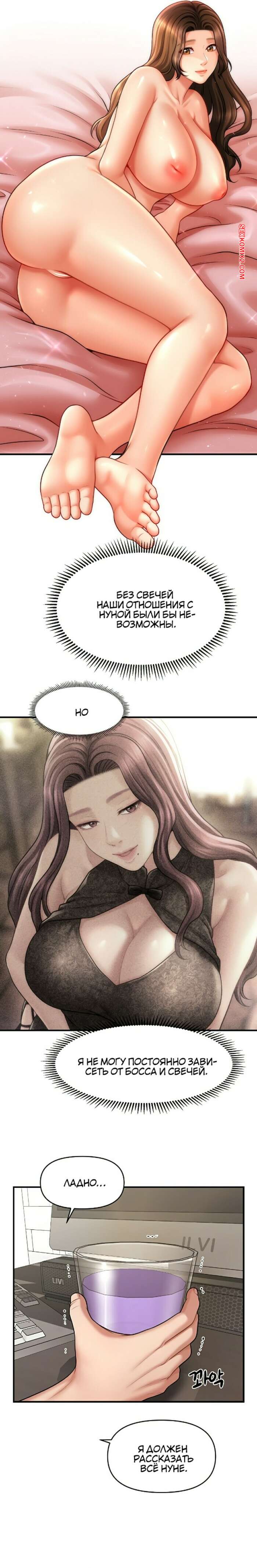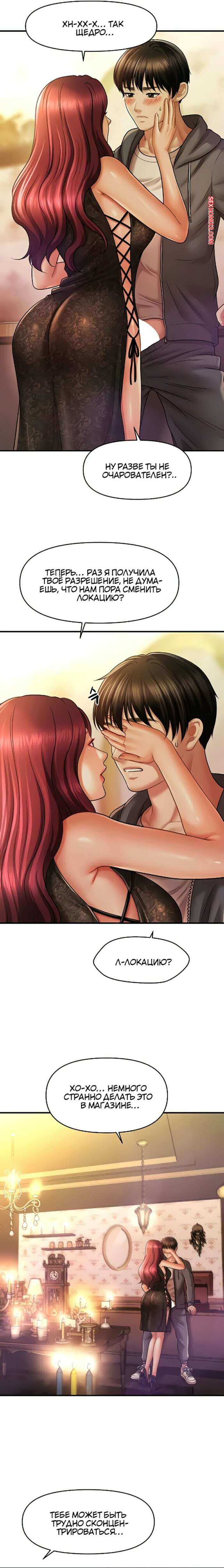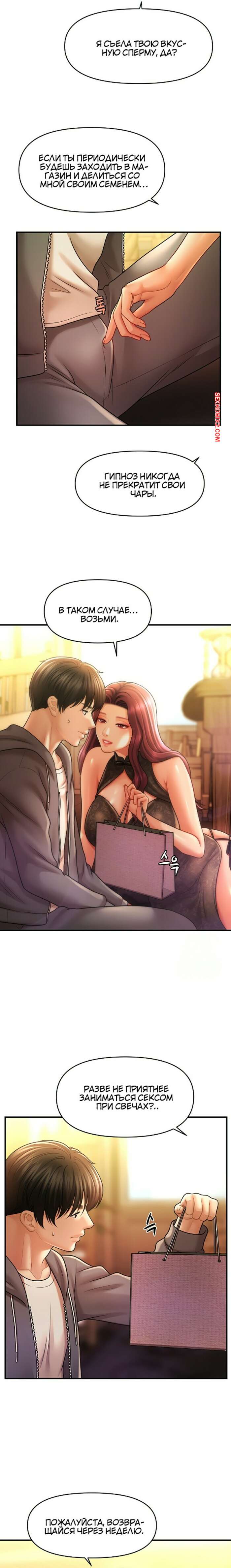 Порно комикс Как подчинить женщину с помощью гипноза. Часть 37 и 38 и 39 Красотка в сексуальном наряде решила порадовать своего дружка. Девушка встала на колени и отсосала хуй парня, после чего расположилась на диване и раздвинула ножки, чтобы насладиться членом паренька в своей киске.