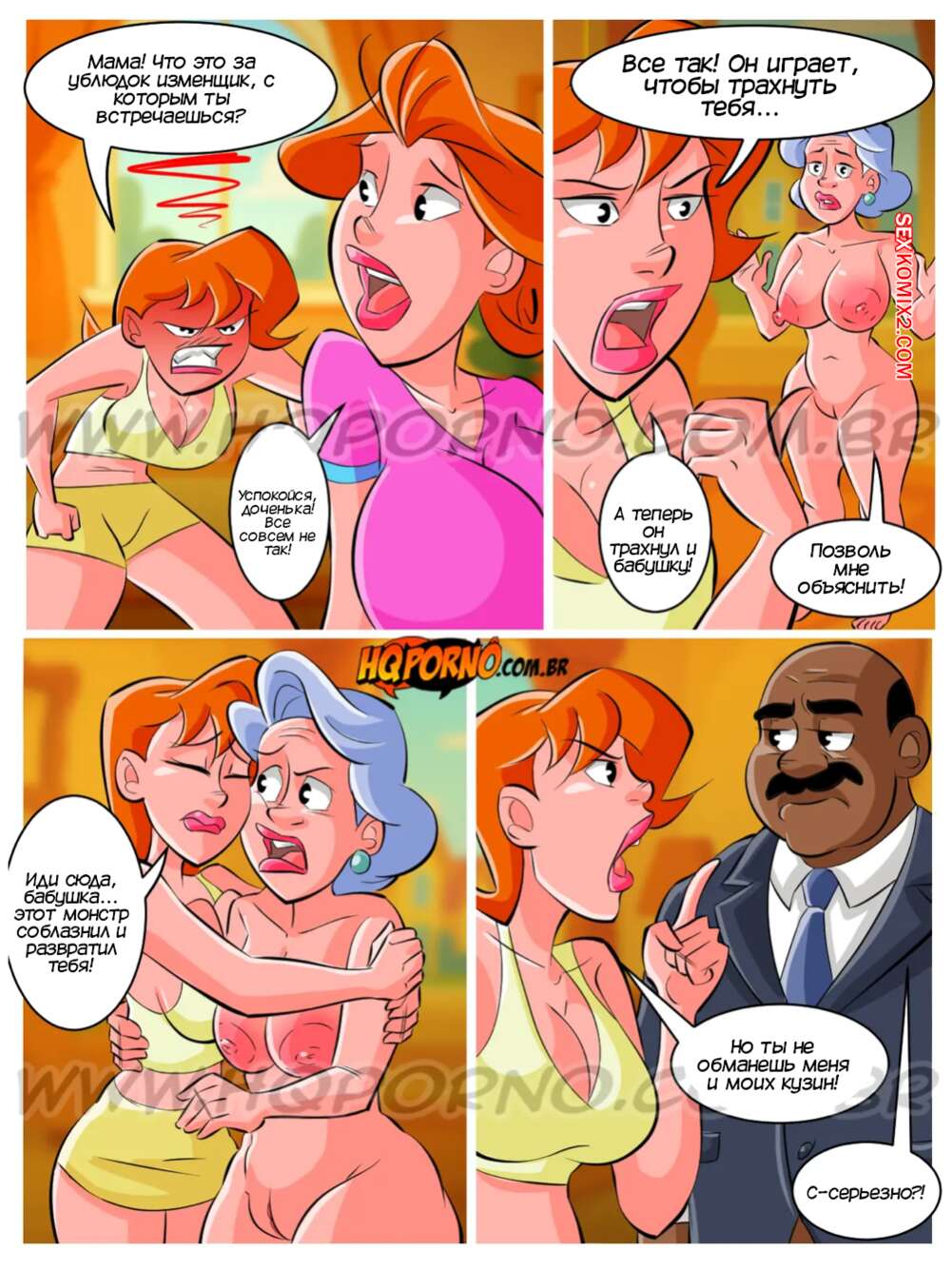 Порно комикс Грязные маленькие кузины. Часть 11. As priminhas sacanas. HQPorno Девушки спалили бабушку за еблей с Силасом, но не смогли устоять перед его огромным членом. Пока мужик продолжил трахать зрелую красотку, молодые девушки устроили лесбийскую еблю рядом с ними.