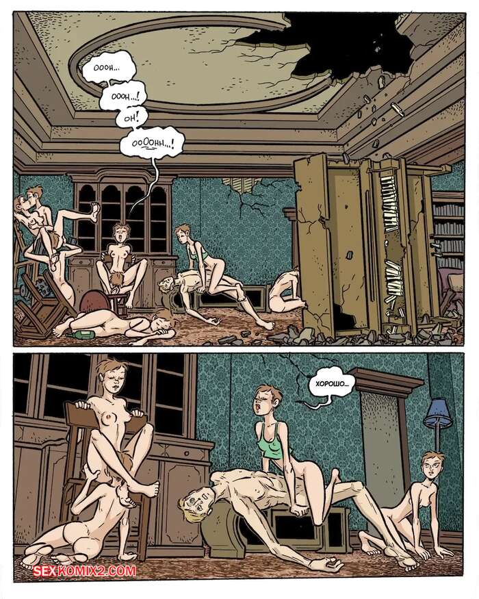 Порно комикс Сумерки. Часть 7. The Gloaming. Hans Rickheit Возбуждающий дым распространился по всему городу. Множесто парней и девушек раздеваются и ласкают друг друга, после чего устраивают массовую оргию с огромным количеством оргазмов.