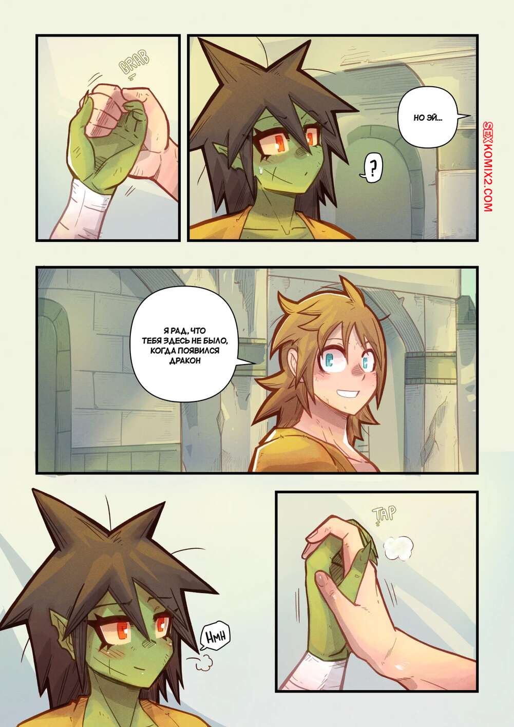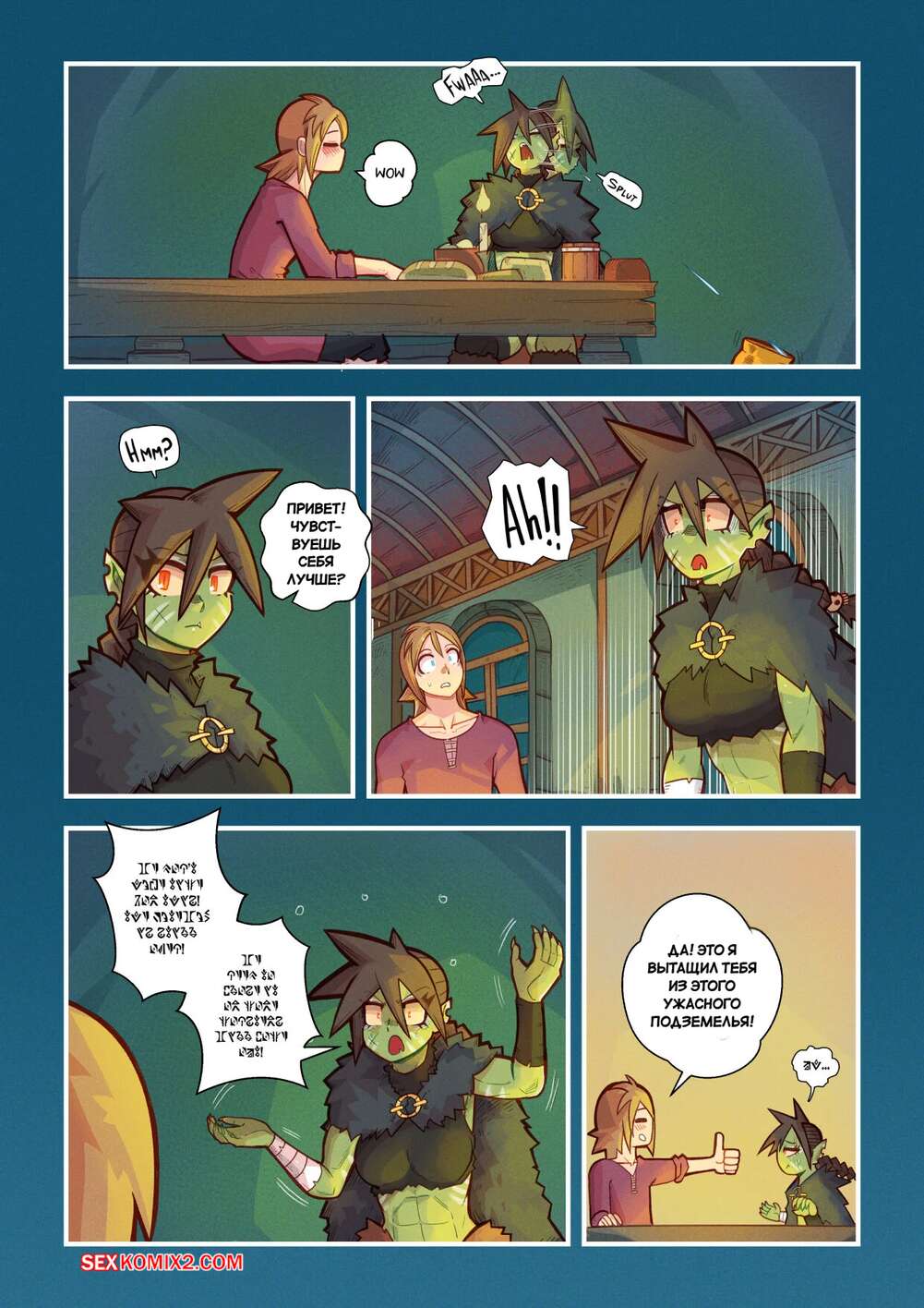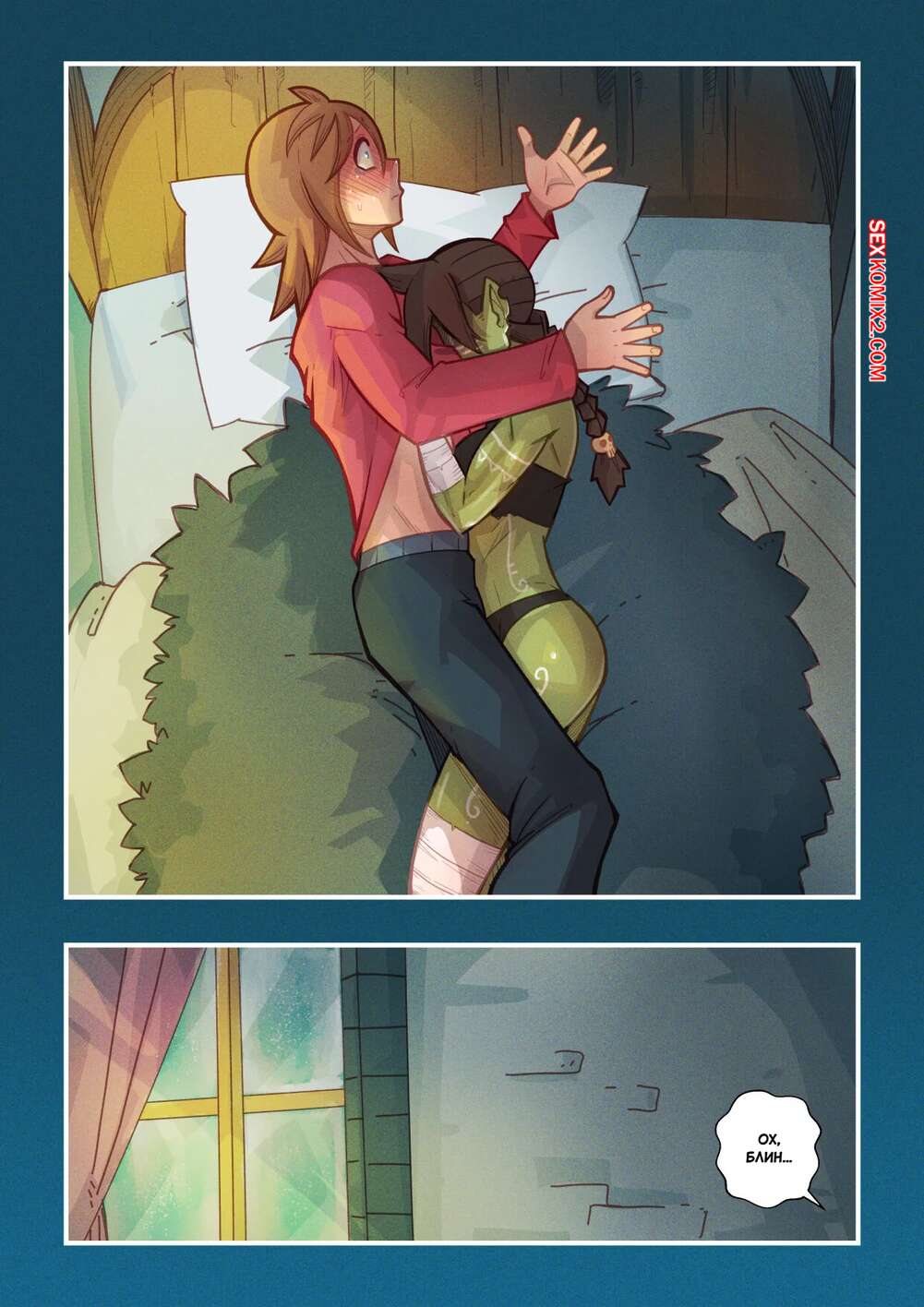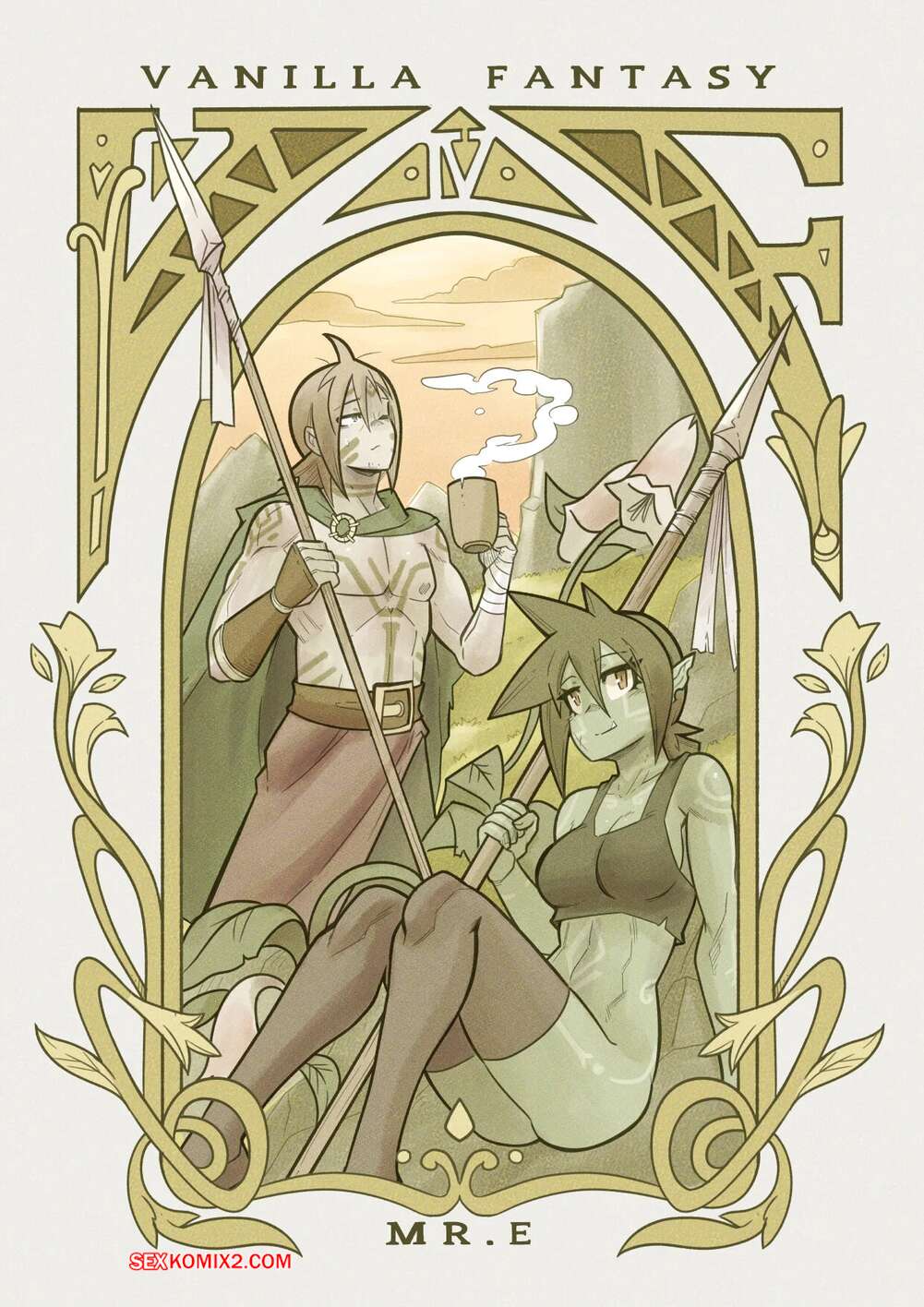 Порно комикс Ванильная фантазия. Часть 4. Mr.E После долних приключений парень и девушка гоблин решили пошалить и расслабиться. Они разделись и стали ласкать друг друга. Красотка оседлала стояк парня и дала ему себя выебать. Теперь они готовы отправиться дальше в путь.