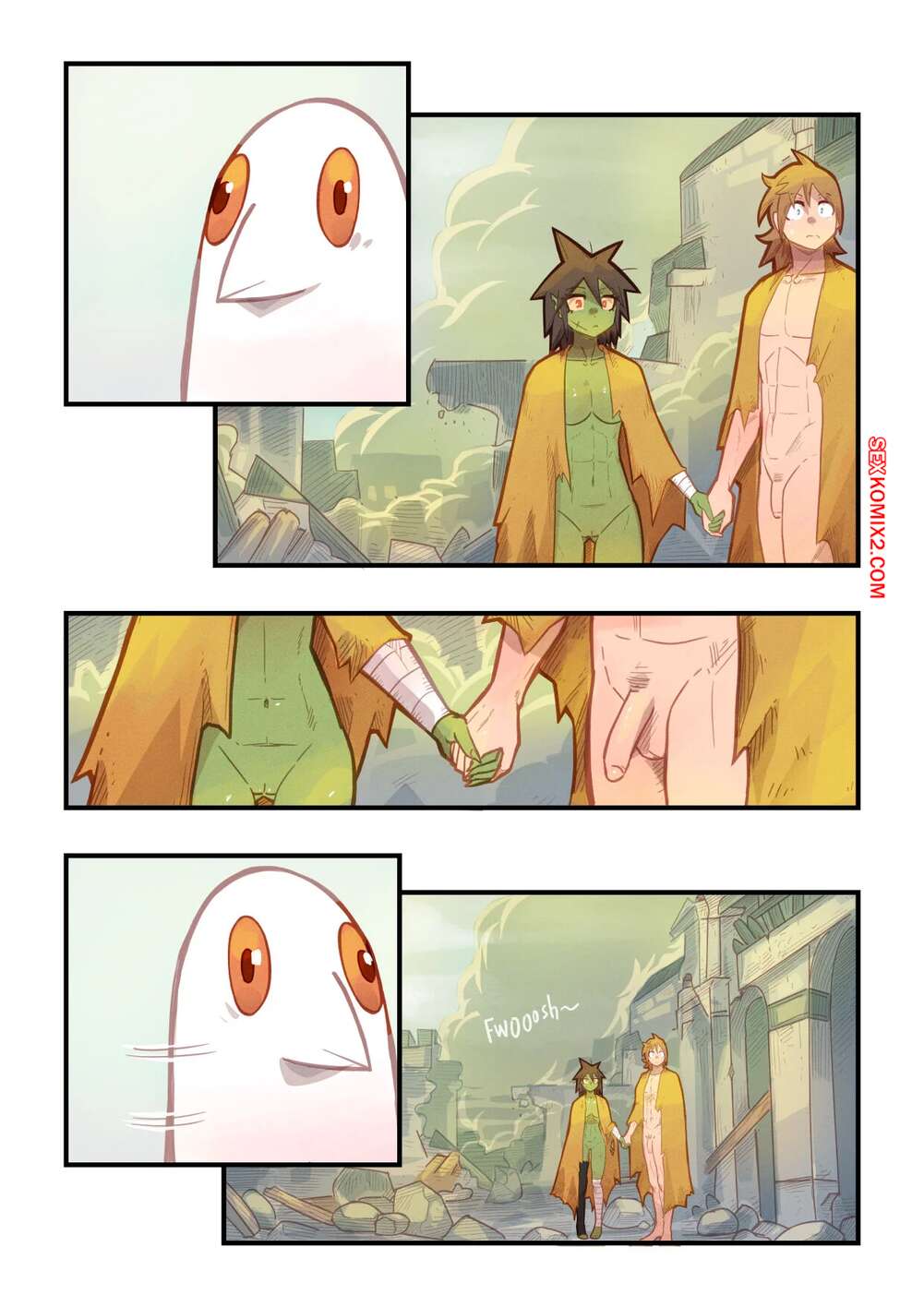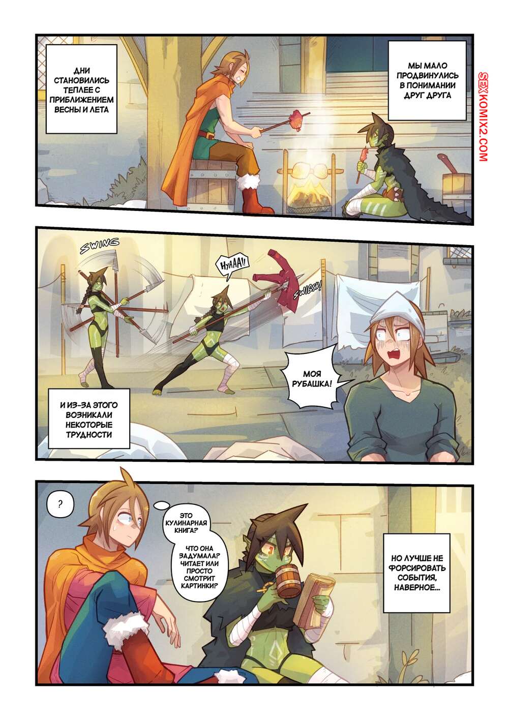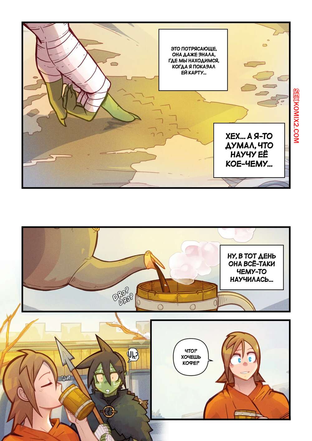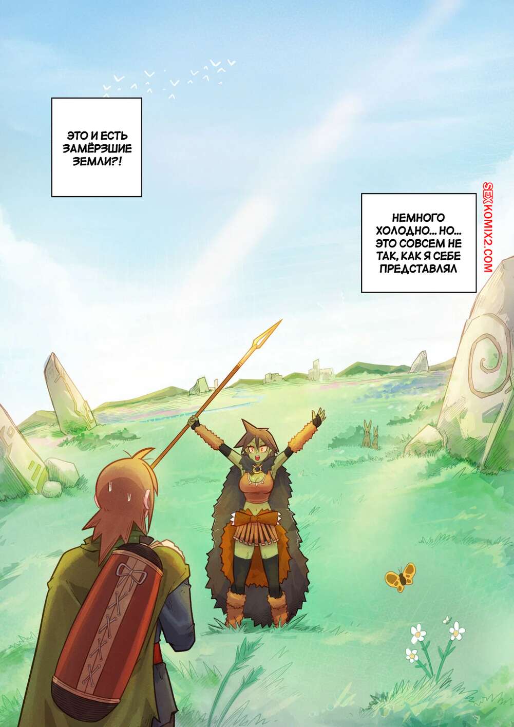 Порно комикс Ванильная фантазия. Часть 4. Mr.E После долних приключений парень и девушка гоблин решили пошалить и расслабиться. Они разделись и стали ласкать друг друга. Красотка оседлала стояк парня и дала ему себя выебать. Теперь они готовы отправиться дальше в путь.