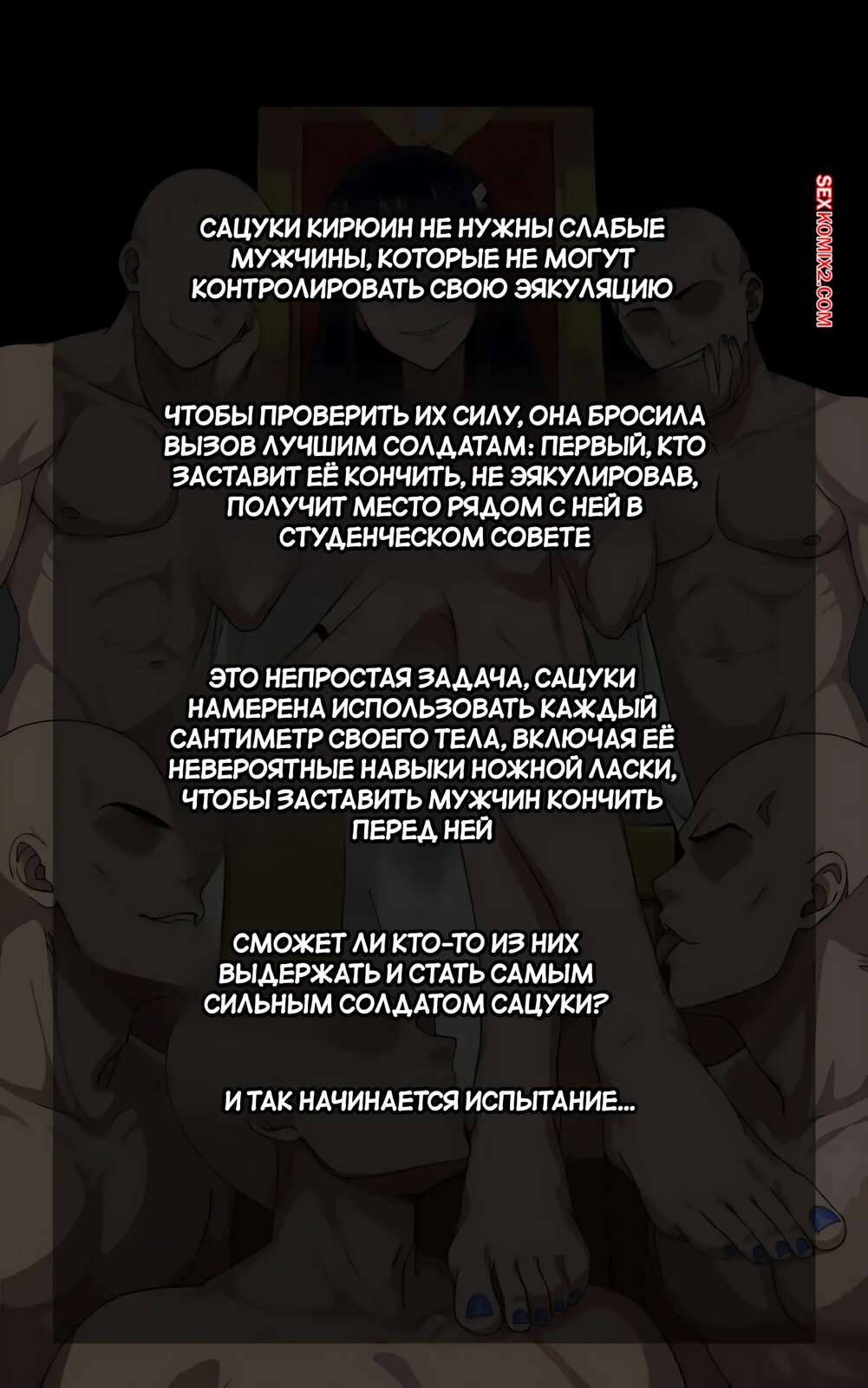 Порно комикс Kill la kill. Поиск сильнейших. Search For The Strongest. Zeojen. Горячая брюнетка желает найти сильнейшего парня, который способен контролировать свою эякуляцию. Она раздевается перед несколькими парнями и отсасывает у них, после чего дает выебать себя во все дырочки.