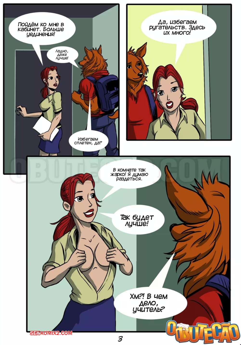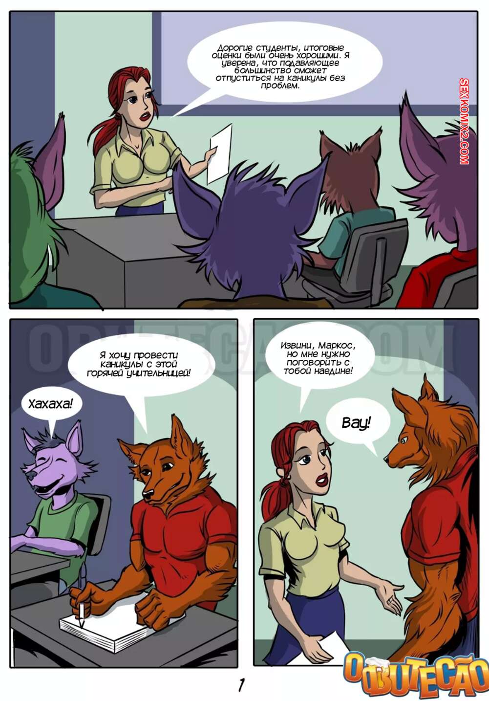 Порно комикс Частный урок. A aula particular. O Butecao Рыжая училка оставила после уроков своего ученика фурри, желая повеселиться. Красотка разделась и отсосала большой хуй парня, после чего дала ему выебать свою пизденку на столе.