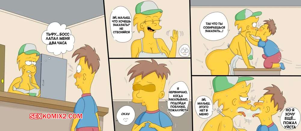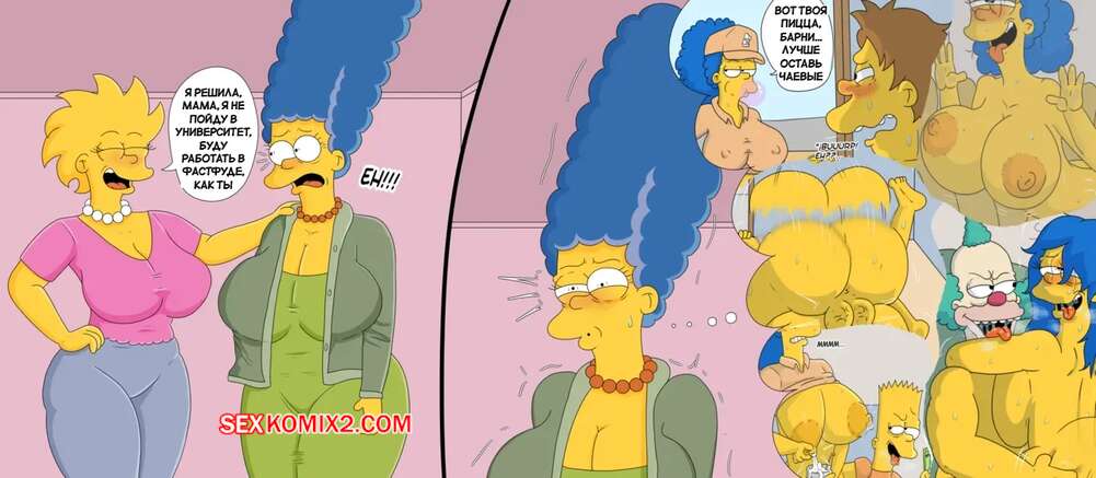 Порно комикс Симпсоны. Приключения Мардж и Лизы в фастфуде. marecattus. Мардж и Лиза устроились работать в фастфуд, где их стало навещать много клиентов, чтобы получить особые услуги. Красотки раздвигают ножки и дают парням себя как следует выебать, доставляя им огромное удовольствие.