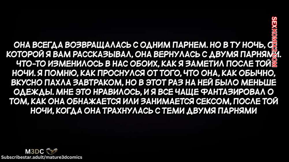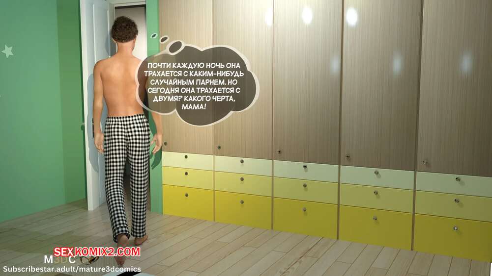 Порно комикс Полуночный вояж. Часть 1. Midnight Voyuer. Mature3DComics. Молодой парнишка проснулся ночью со стояком и услышал стоны из комнаты своей матери. Он пошел проверить что происходит и обнаружил, как два незнакомца ебут его мамку во все дырочки.
