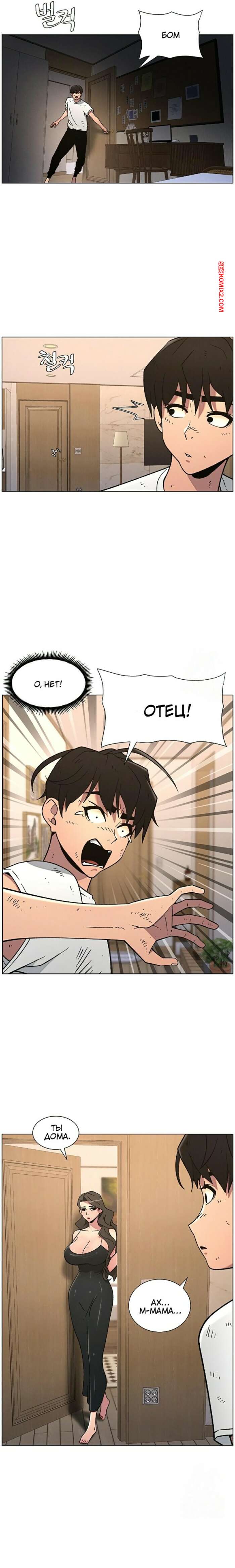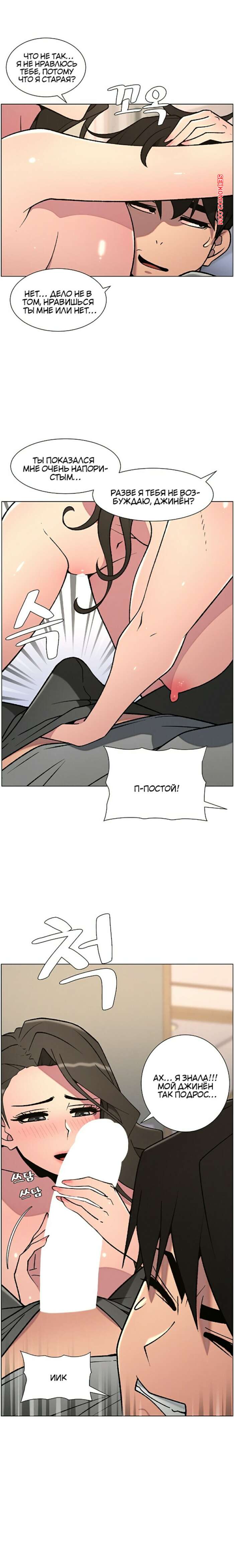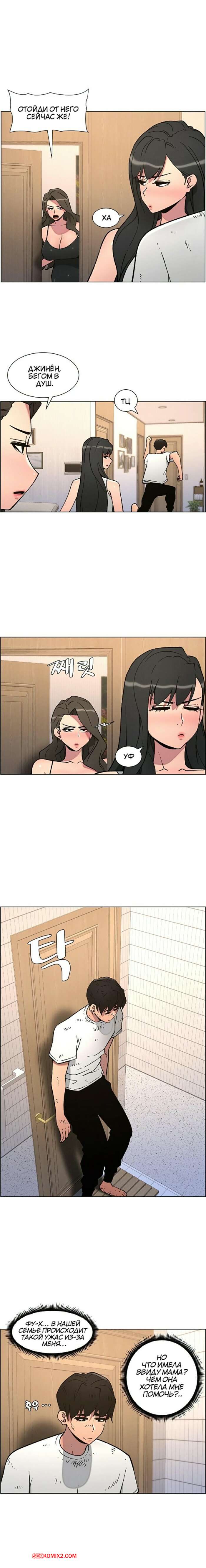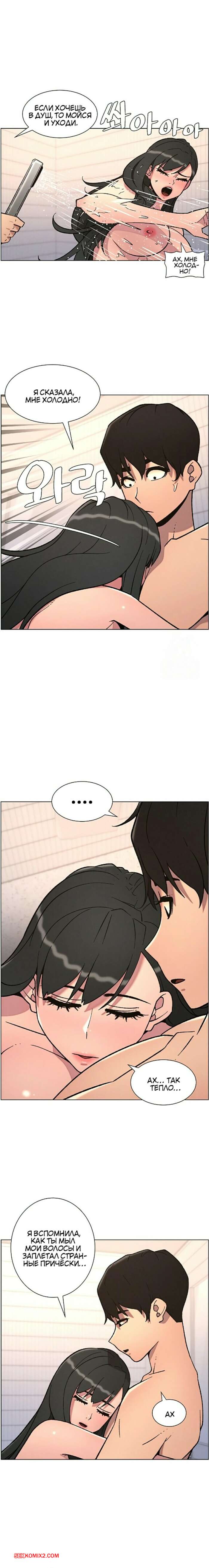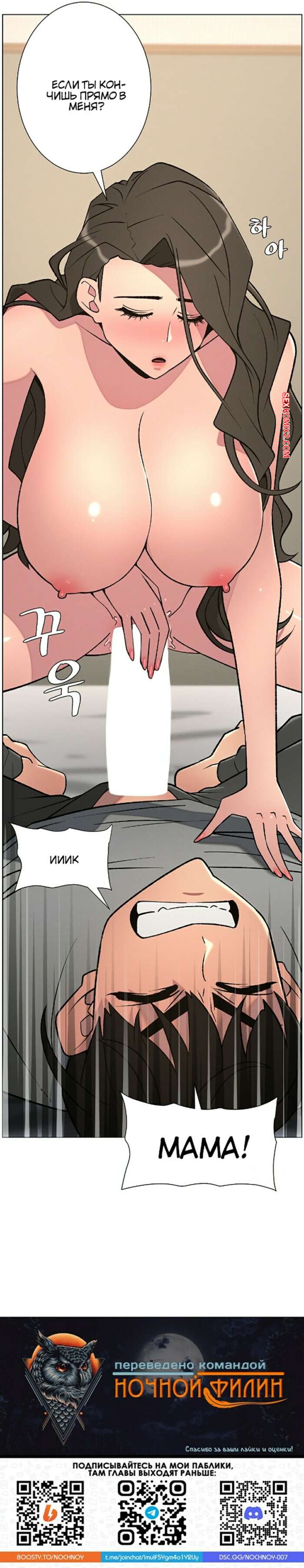 Порно комикс Тайный урок с моей сестрой. Часть 57 и 58 и 59 Парнишка вернулся домой и поспешил принять душ, где к нему присоединилась возбужденная брюнетка. Затем парень отправился спать, но к нему пришла его горячая мамка и стала сосать член сына.