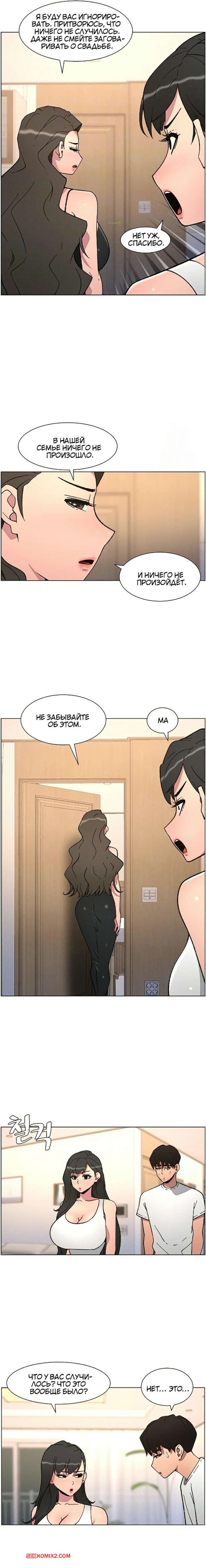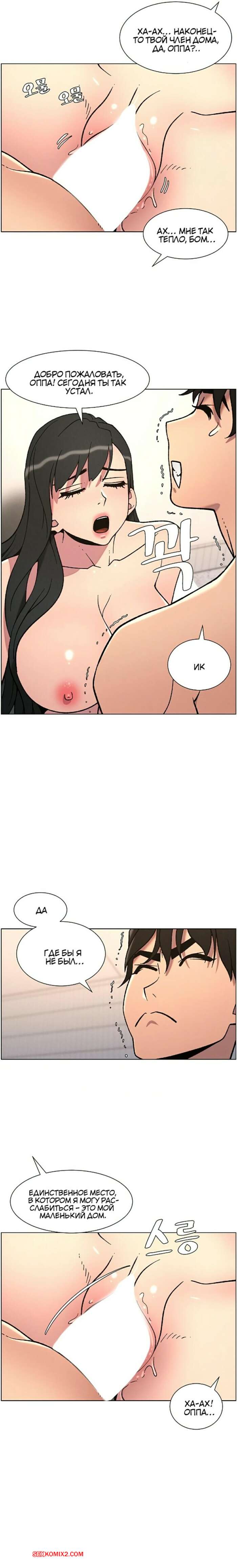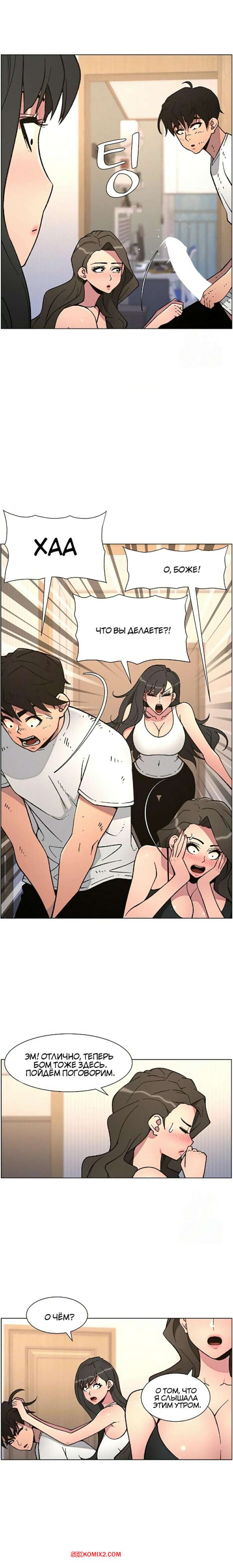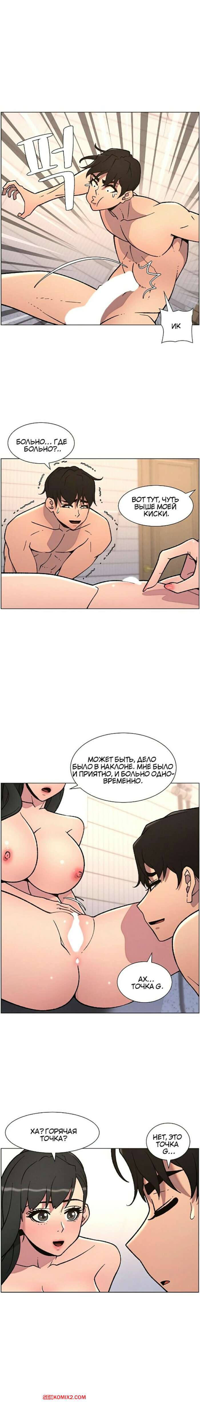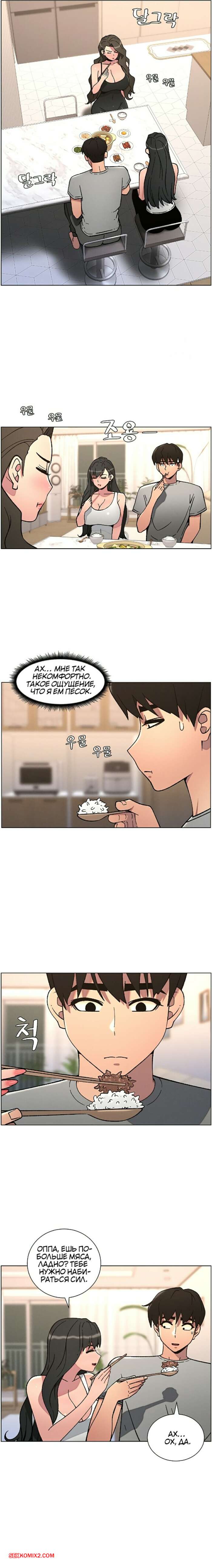 Порно комикс Тайный урок с моей сестрой. Часть 57 и 58 и 59 Парнишка вернулся домой и поспешил принять душ, где к нему присоединилась возбужденная брюнетка. Затем парень отправился спать, но к нему пришла его горячая мамка и стала сосать член сына.