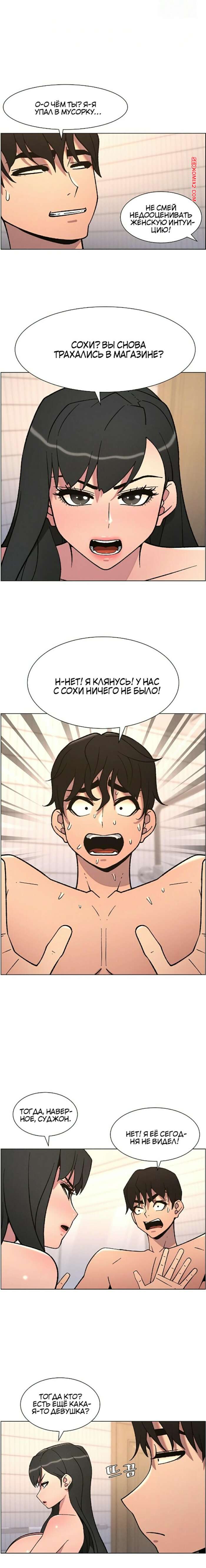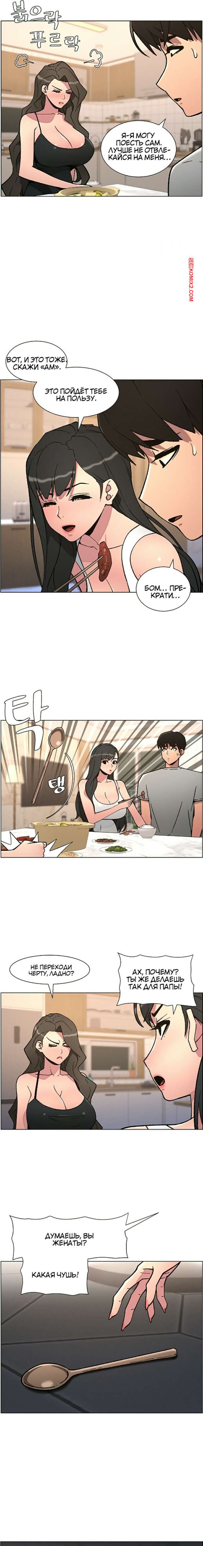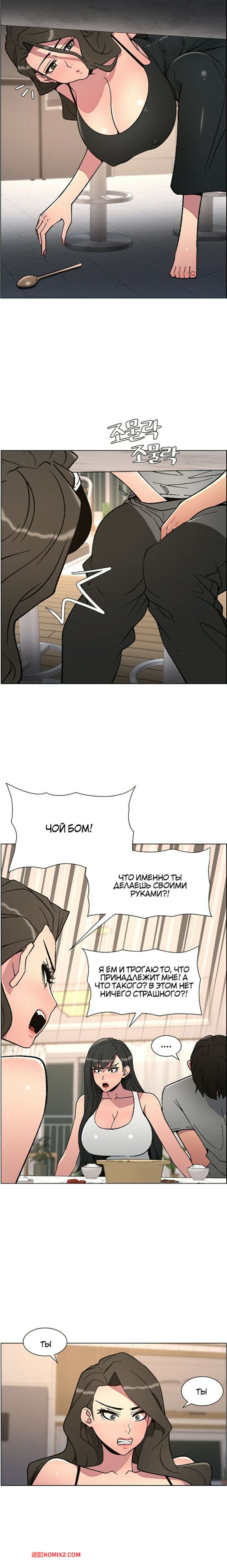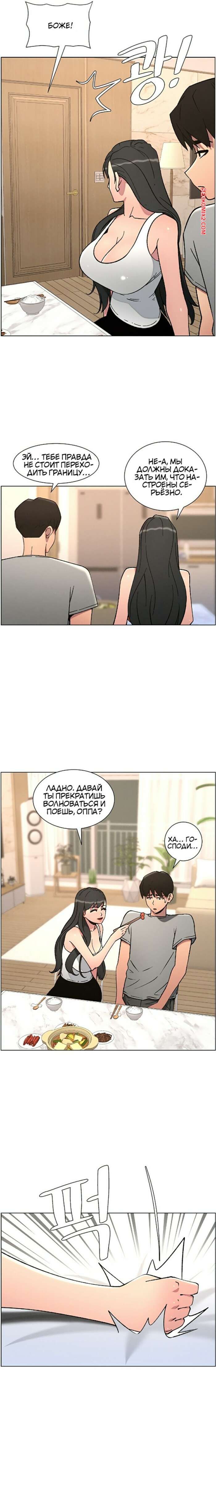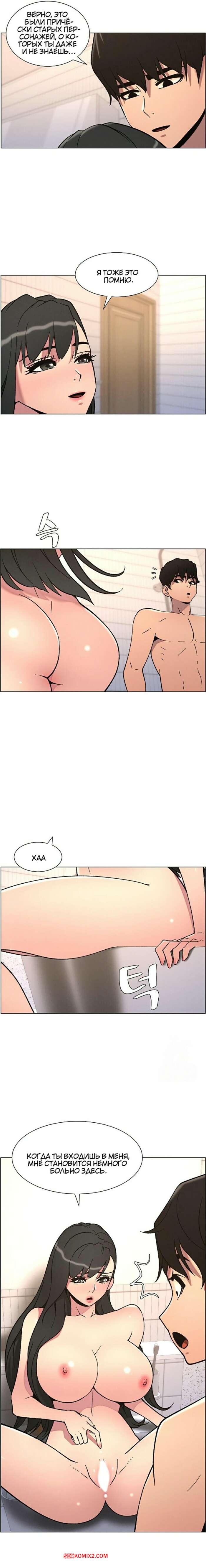 Порно комикс Тайный урок с моей сестрой. Часть 57 и 58 и 59 Парнишка вернулся домой и поспешил принять душ, где к нему присоединилась возбужденная брюнетка. Затем парень отправился спать, но к нему пришла его горячая мамка и стала сосать член сына.
